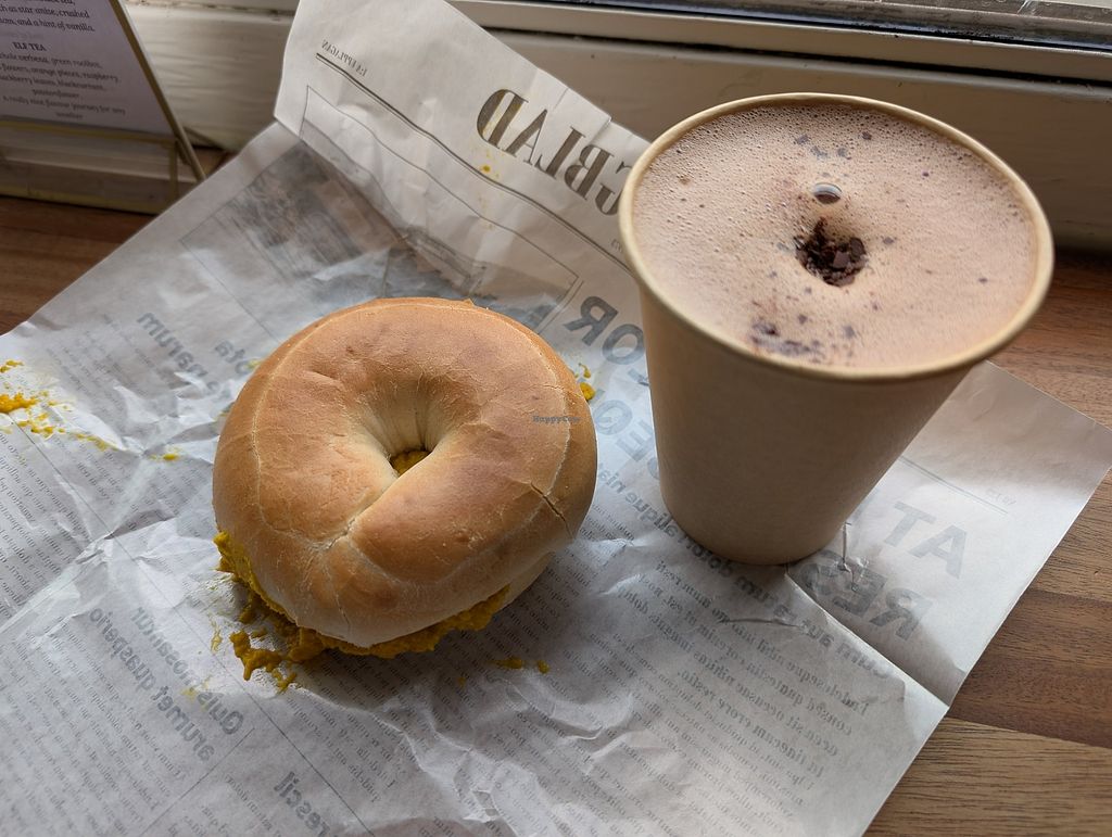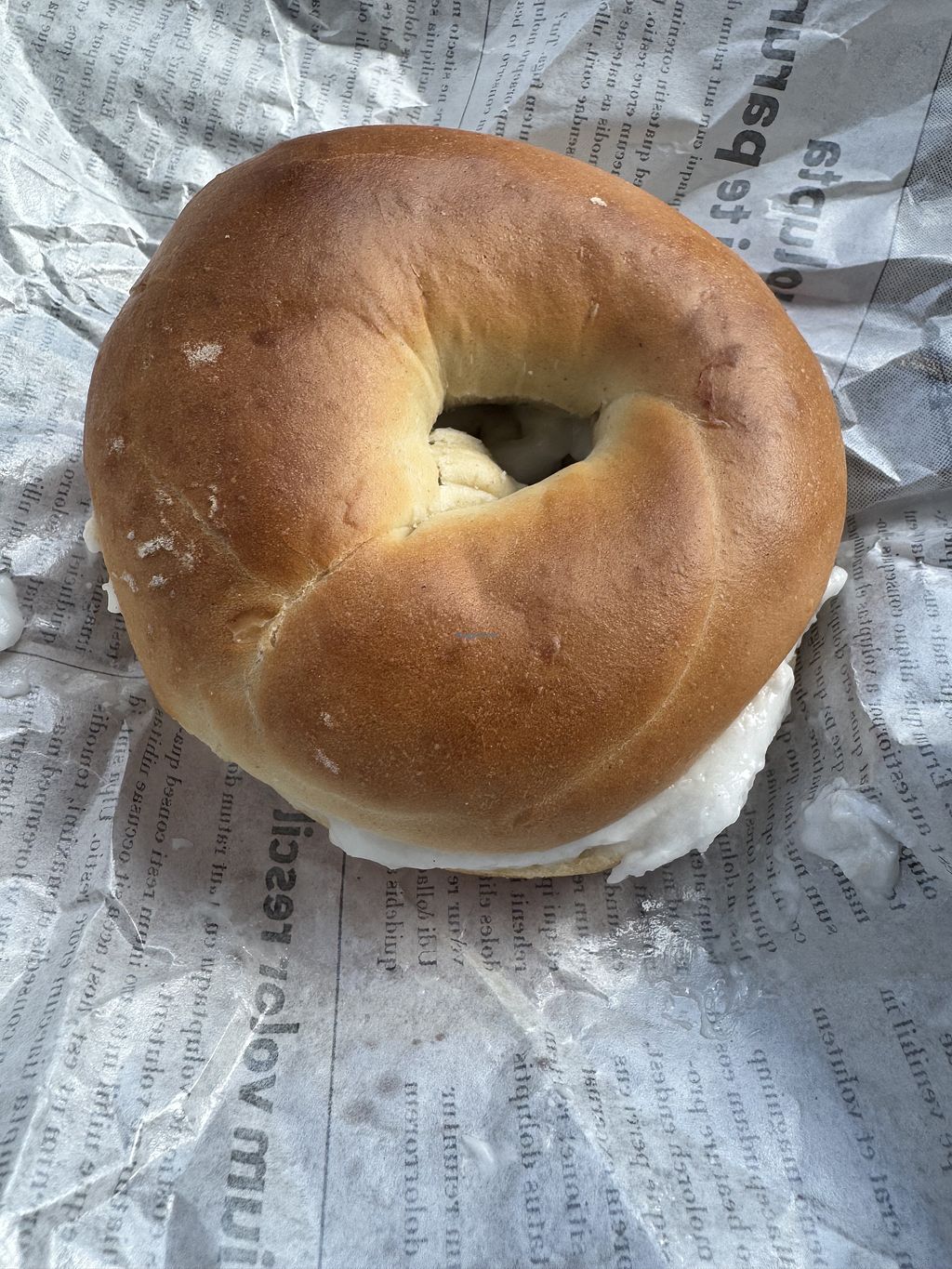 Read moreBagels are warm, soft inside with a crust. They have vegan cream cheese ( looks like violife), cheddar and hummus.