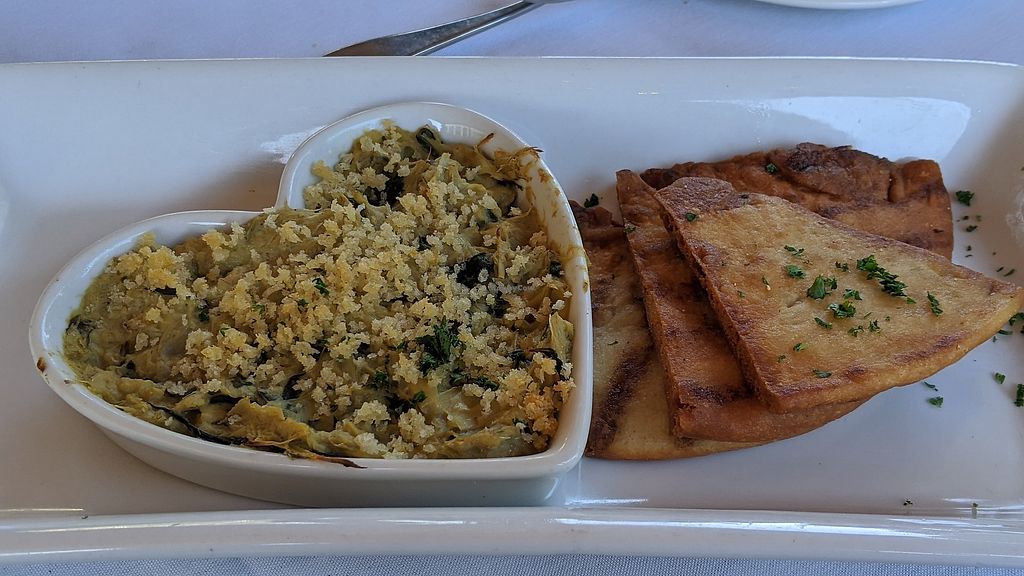 This place was amazing! The food was incredible. I got the vegan spinach artichoke dip and the vegan fish tacos and it was crazy good. Not to mention the service was incredible as well. Our waiter was so nice and funny. It has a “fancy” vibe that I thought would make me feel a little uncomfortable, but the people there made everything feel so personal and welcoming. I would go here everyday if i could! I’d give 5 full stars if happycow would let me!