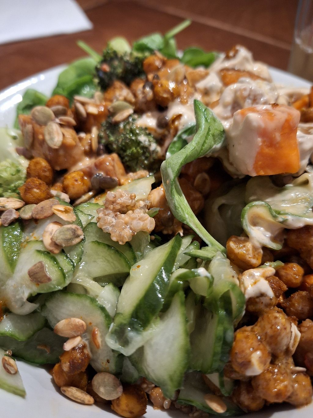 We ordered the Middle East bowl, the sweet potato wrap and our daughter ' created ' her own vegan bowl with smoked Tofu,cucumber, chickpeas and hummus! Everything was amazing, so was the staff