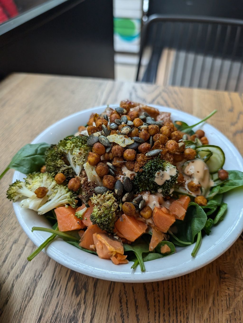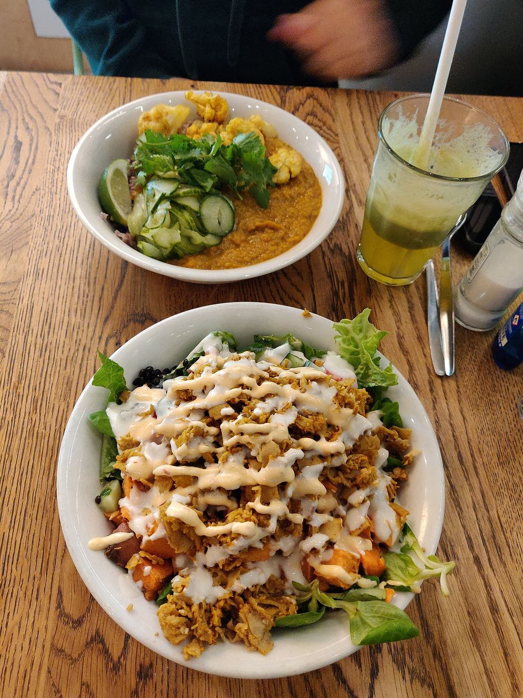The Greek Gyros bowl (€14,00) with vegan gyros and no tzatziki to full…