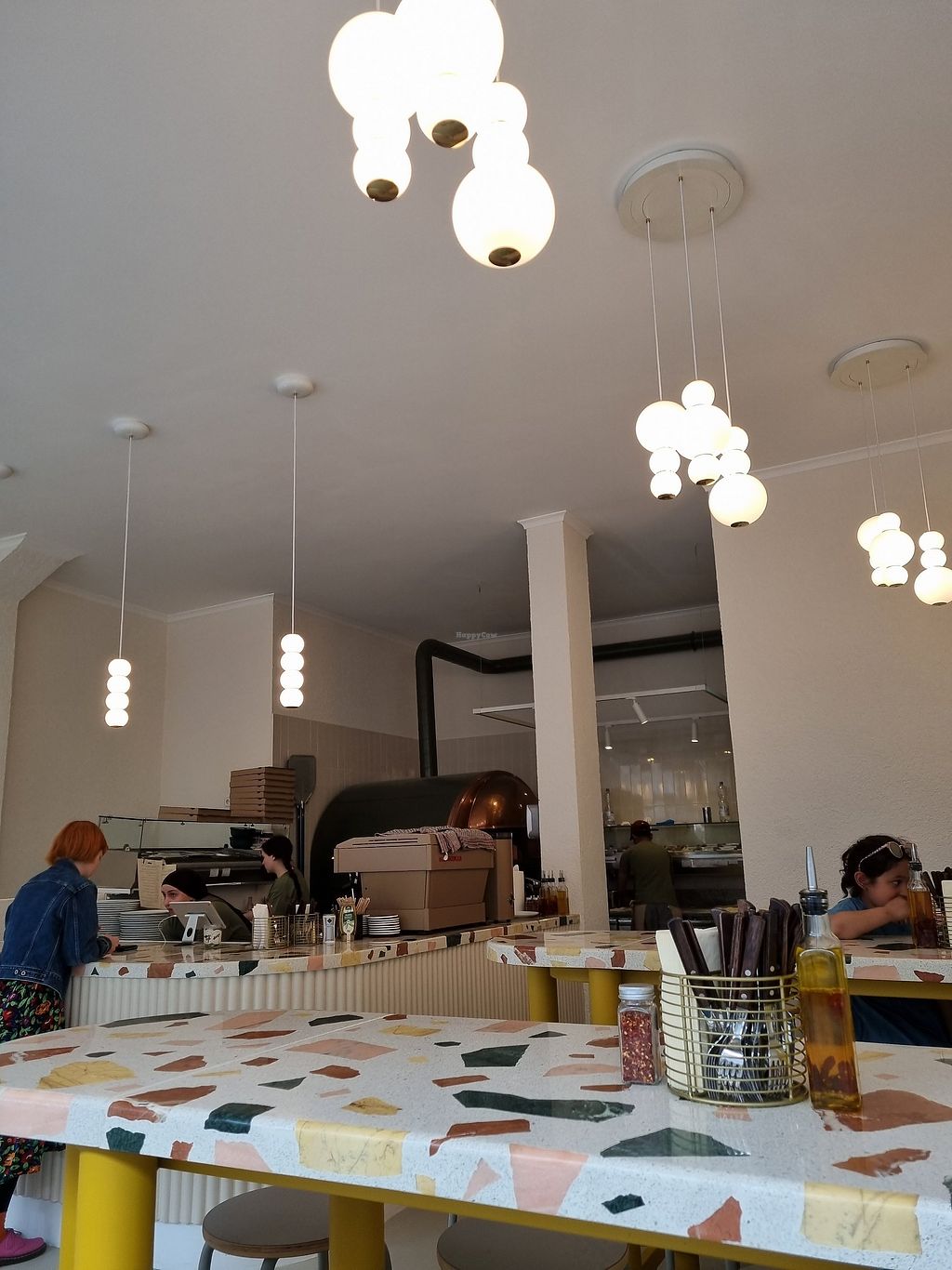 Serves meat, vegan options available. Neapolitan pizzeria serving wood-fired pizzas. vegan pizzas and pizzas, which can be veganised are clearly marked. Choices include margherita, marinara, and tonno. Has vegan parmesan, vegan mozzarella, vegan tuna, and several mock meat toppings. Open Tue-Sat 11:00-22:00, Sun 12:00-22:00. Closed Mon.