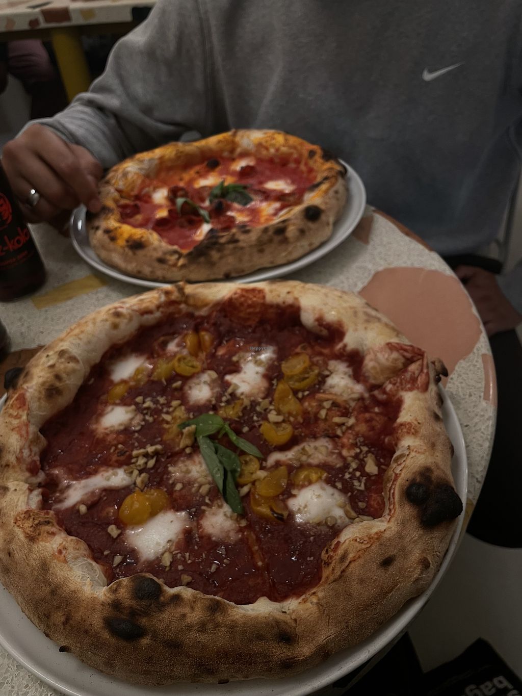 Sehr modernes Restaurant das frische Neapolitanische Pizzas anbietet mit sehr vielen veganen Varianten. Fast alle Pizzas können als vegane Variante bestellt werden, also z.B. mit veganen Käse und Schinken (ich hatte die Pizza Prosciutto E Funghi). Wird auch entsprechend auf der Karte so aufgeführt. Preis etwas teurer. Aber lohnt sich definitiv, dünner Boden und fluffiger Rand - genau so wie es sein soll 😍