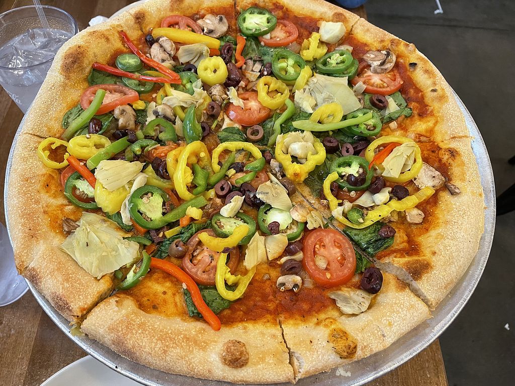 Very veggie pizza no cheeses. They do have daiya cheese as an option …
