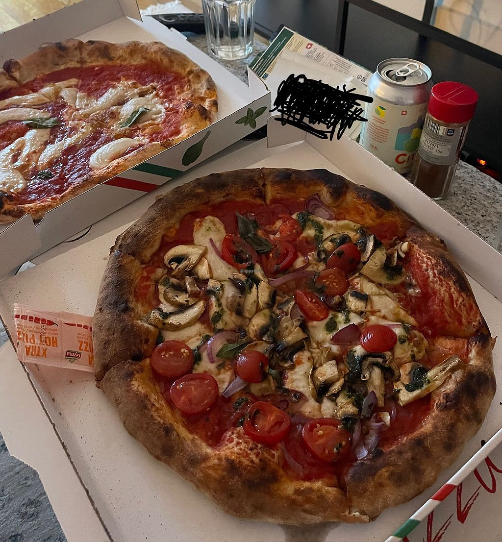 Rosa V pizza MAKE SURE TO EMPHASIZE THE V (VEGAN) BECAUSE THEY BROUGH…