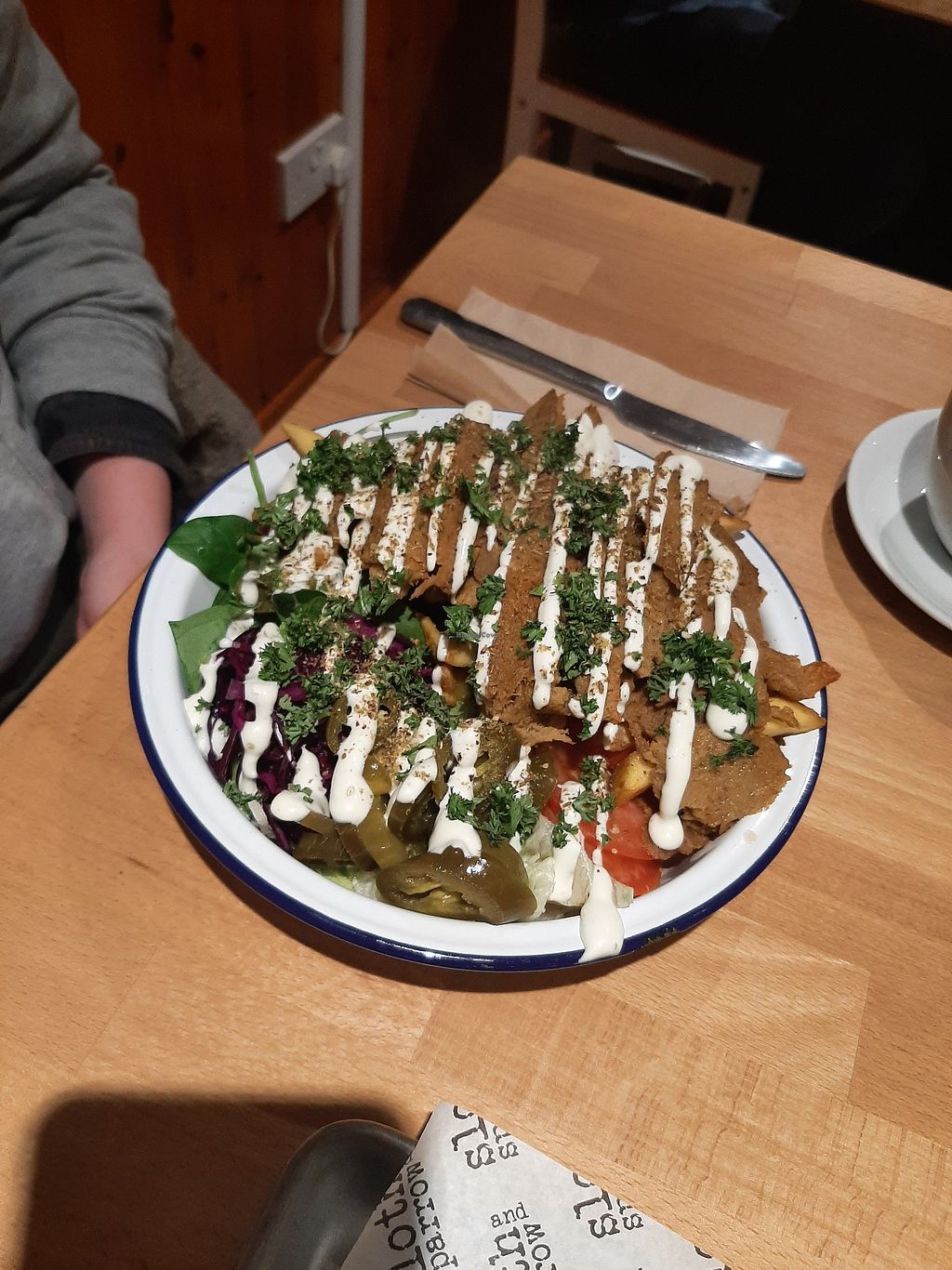 Set on a side street towards the quayside, this comfort/junk food venue was a good find. I had the loaded fries with seitan doner. The portion was big with a generous helping of well seasoned seitan. The chips and salad included were again a good portion and the pickles and sauces went well with the meal. At the time of visiting it was takeaway only but head towards the quayside and there are plenty of benches to eat at whilst taking in the view of the harbour and boats.