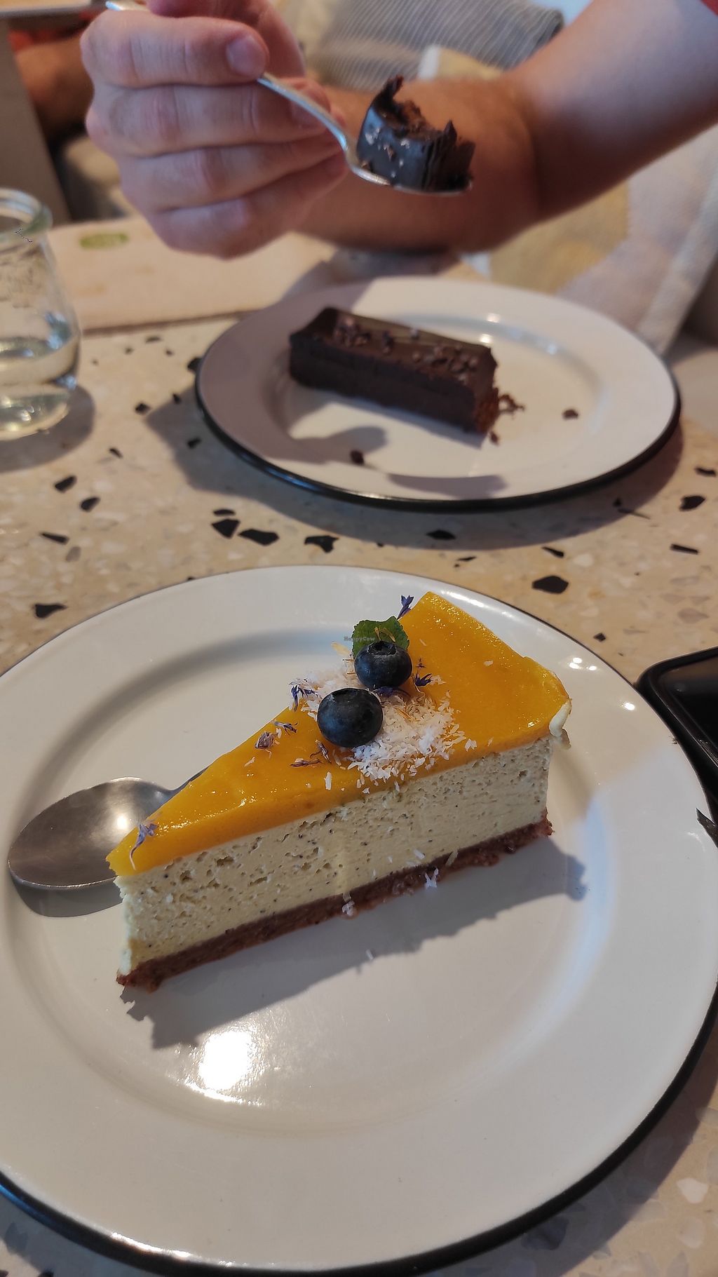 This is an amazing place. Fully vegan with fabulous brunch options and wonderful pastries. We’re couldn’t decide what to have so ordered a few things and shared! We had grilled cheese sandwich, pancakes, a croissant muffin and blueberry cheesecake (gluten free). All absolutely delicious 🤤