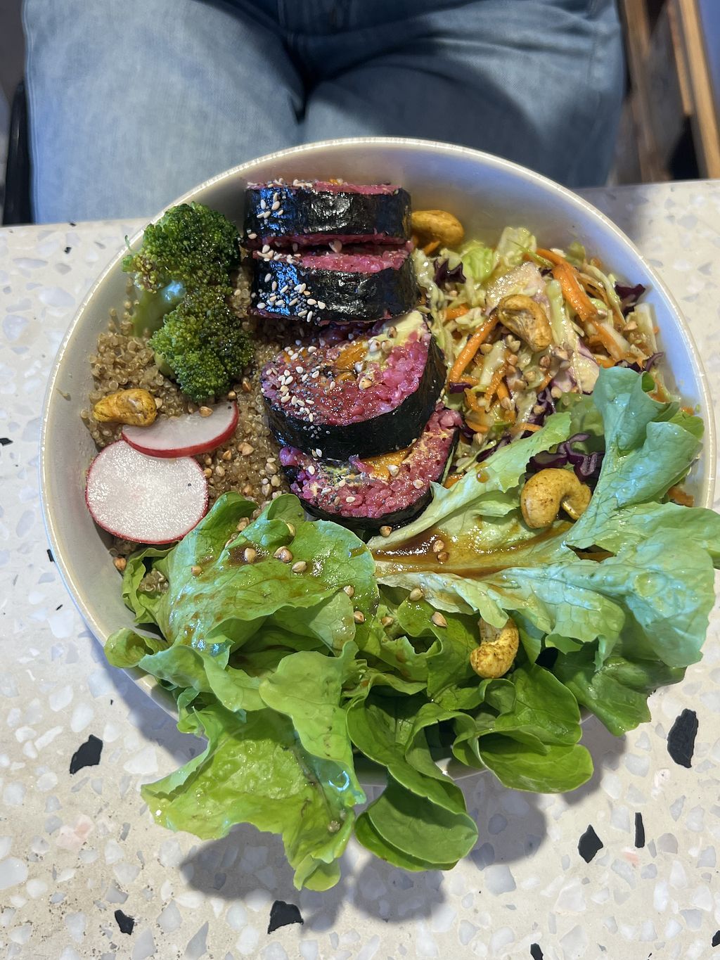 Pros: La nourriture, tout est VEGAN 🌱 🥑 🥗 , Facile d’accès - parking en face