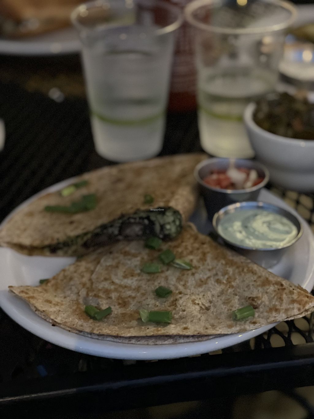 The special that day: crumbled veggie ground quesadilla with pico de g…