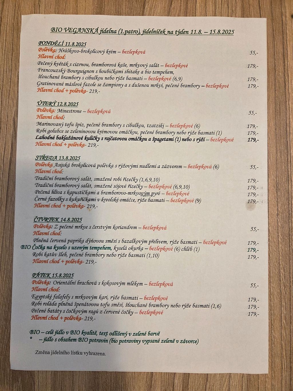 Weekly menu