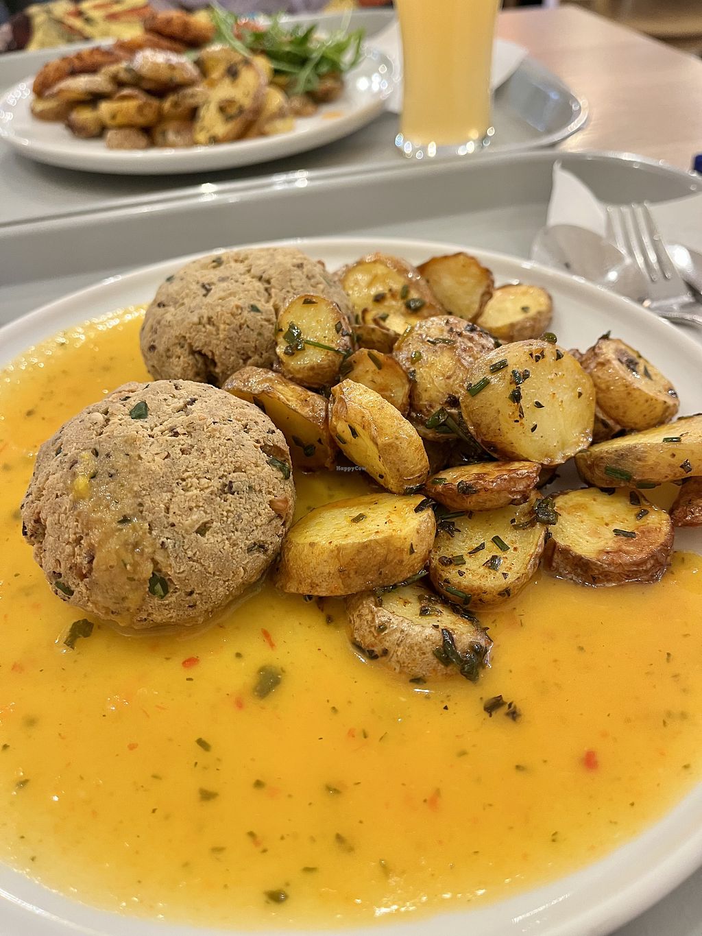 Serves meat, vegan options available. Restaurant with some vegan dishes, including a tempeh burger, curry with rice and others. Also has a daily menu downstairs with at least one vegan choice. Open Mon-Fri 08:00-18:00.