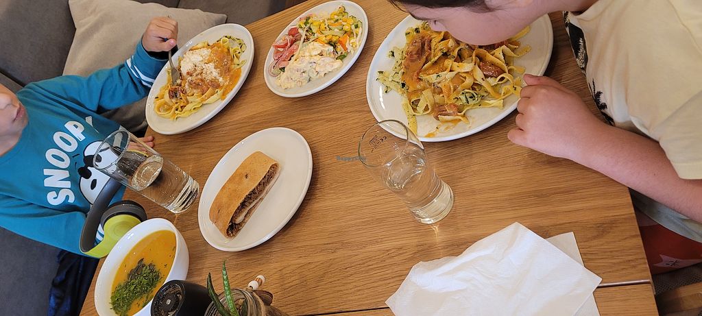 We came to this bistro during a 1 day trip to Pilsen. At 3pm all other bistros were closed, but Slunecnice was open. Although they ran out of all the hot meals, except vegetarian pasta wt sauce, I still managed to get very delicious late lunch - 300gr of mixed salad plate and a vegan baguette wt smoked tofu. I was kind of full after the salad, so my intention was to eat just half of the baguette, but boy, it was tasty! So I couldn't stop😅 My hubby and kids also enjoyed their meal a lot, saying it was delicious. Pity we couldn't get coffee cause they ran out of soy milk.