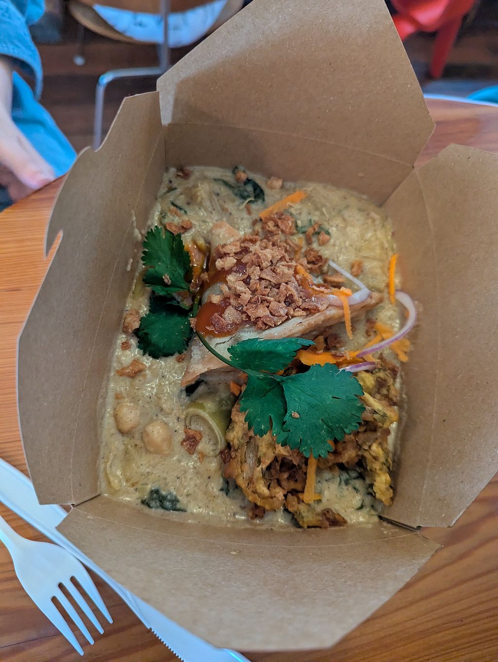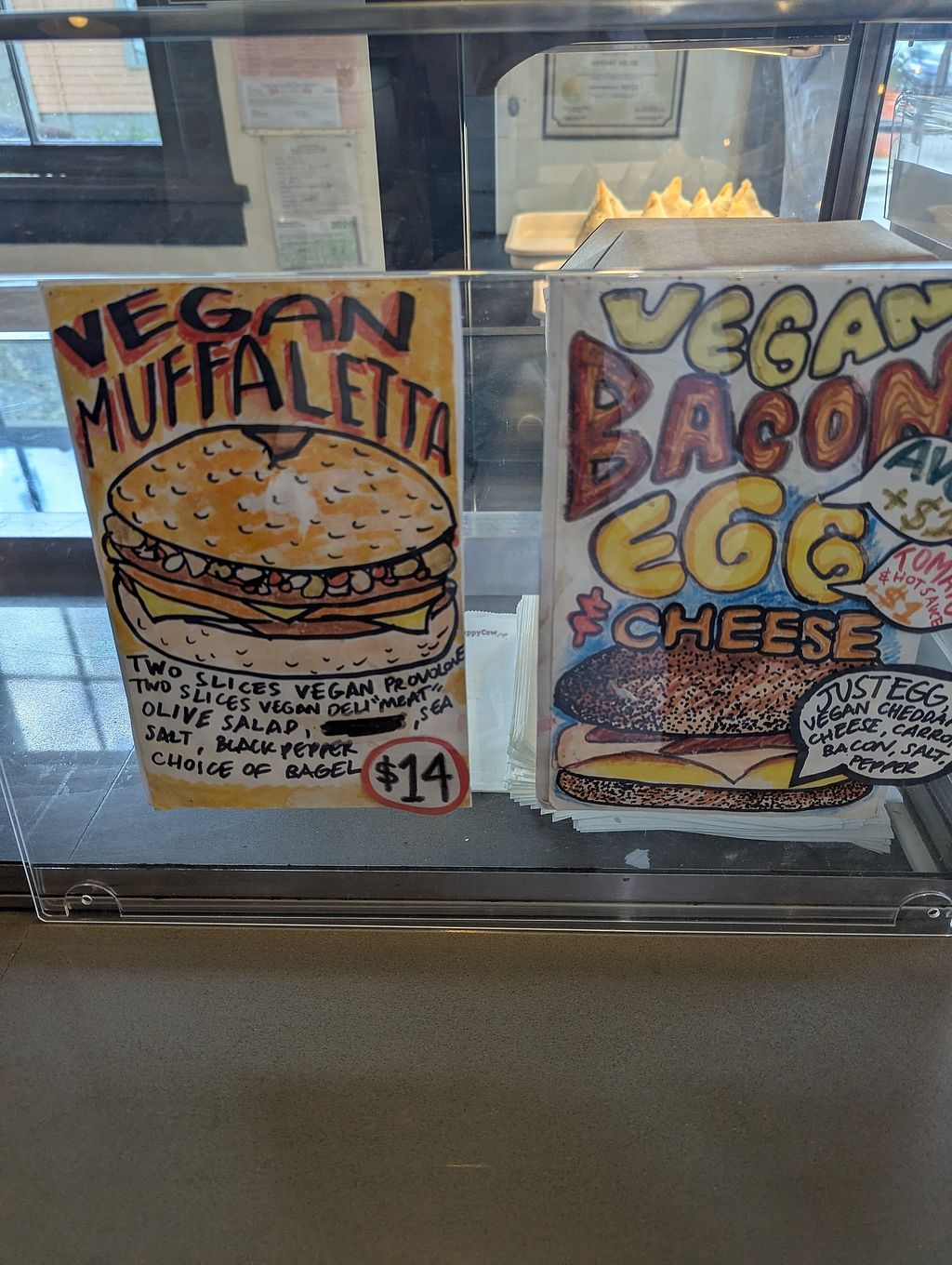 garlic bagel with special vegan vegetable cream cheese and a vegan "ma…