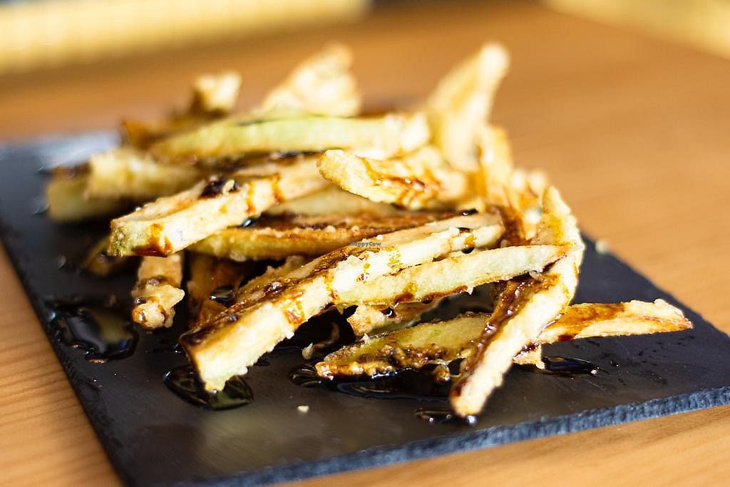 Empezó como vegetariano y ahora es 100% vegano, lo cual ya es un puntazo. Ponen tapas, raciones y burguers, todo muy rico. La única pega que le pongo es que no ponen tapas con la bebida una vez has pedido de la carta(al menos cuando yo fui), y personalmente hay veces que me apetece tomar unas tapas y alguna ración suelta y luego seguir de tapas..si me dejan de poner tapa me corta un poco el rollo...Igualmente vale la pena y me alegro de tener otro sitio al que poder ir a comer vegano🥰