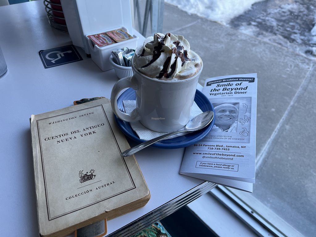 Si estás en Ny se visita no pilla precisamente de paso. Tendrás que desplazarte a una hora o más para encontrar esta joyita. Parece ser el primer restaurante vegetariano que abrió en NY en los 70. Yo probé wl desayuno especial vegano con salchichas y bacon y los sabores eran increiblemente realistas. Por el espíritu y el rollo del espacio me parece una pena que no sea vegano y que siga sirviendo huevos y lácteos.