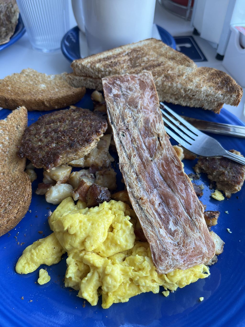 The soy bacon is wonderful. The vegetarian hash was yummy but a bit spicy. The staff were all nice and attentive.