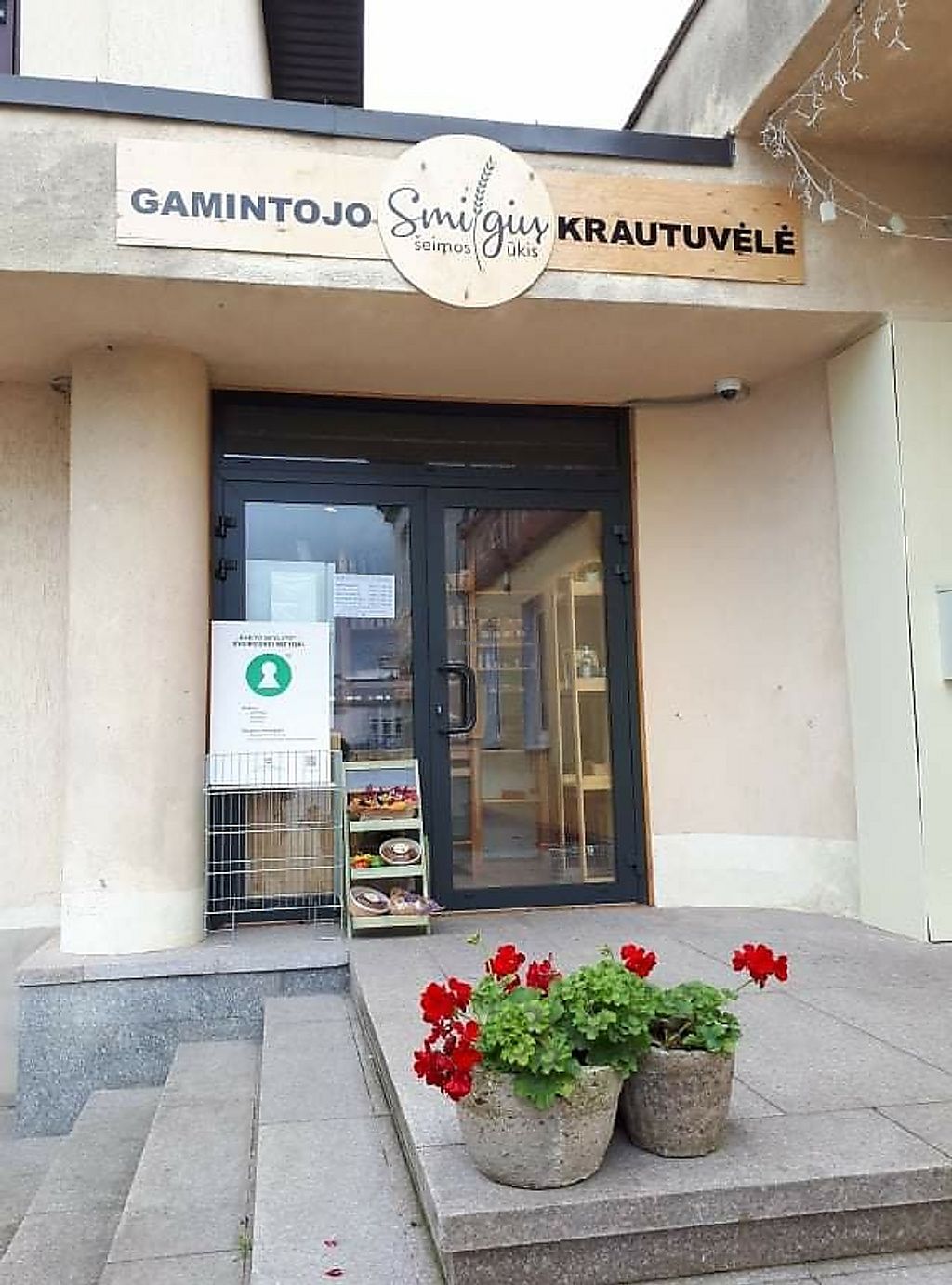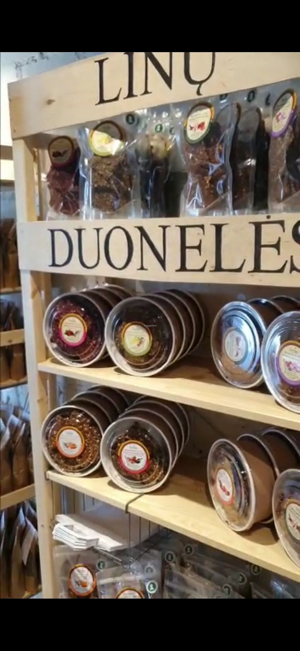 Shop view (inside). Cold pressed oils: flaxseed, hemp.