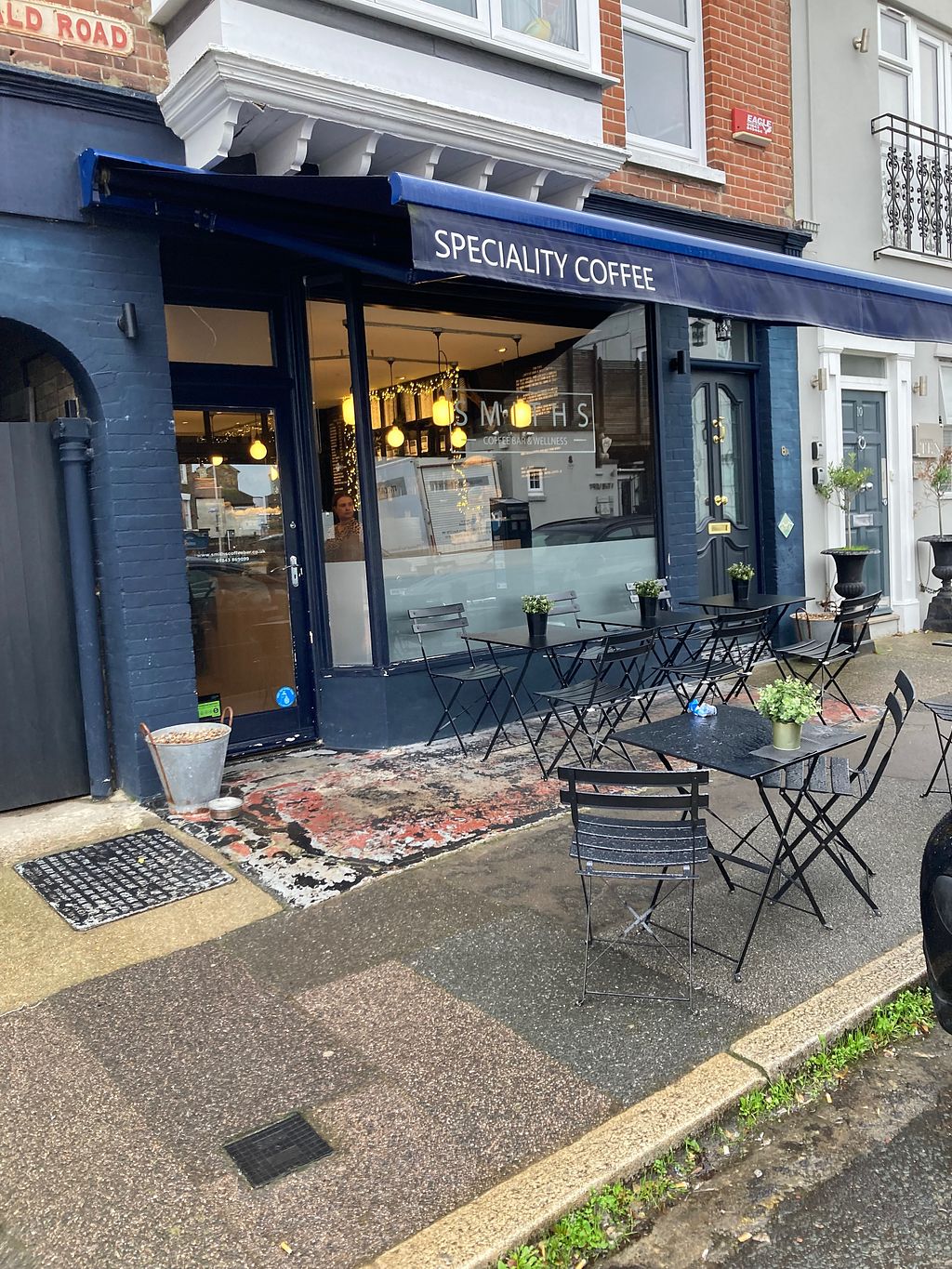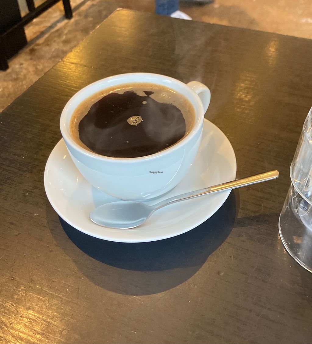 Coffee shop with plant milk for drinks. Has some labeled vegan food options, such as a vegan and gluten-free caramel pecan brownie, granola bars, and some savory toasts that can be made vegan upon request. Open Mon-Fri 07:00-15:00, Sat-Sun 07:30-15:00.