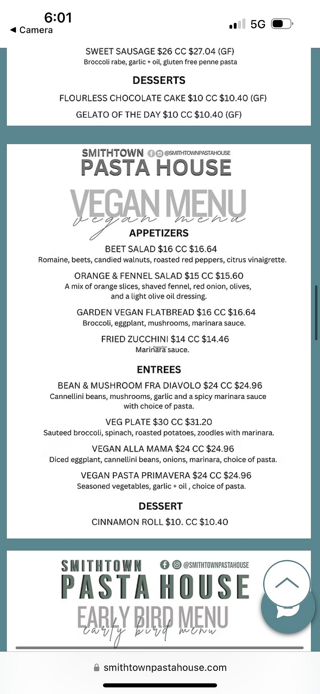Separate vegan menu. Got the pasta allá mama which was delicious but it was missing the cannellini beans. Really good and a pretty big portion but it was definitely a little pricey. I would recommend it!