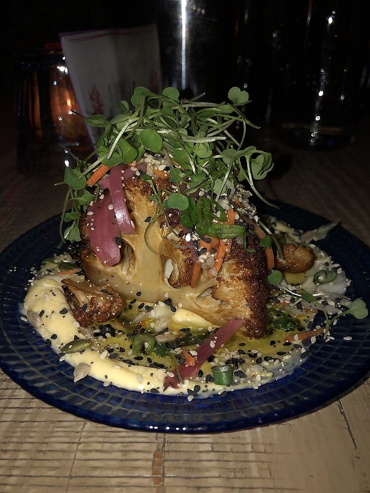 I'm loving Snack Boys so much! If I lived in the area, I would probably eat here a couple times per week! Let's start with the vibe - casual and divey but fun and trendy at the same time. From the decor to the music to the patrons...it's kind of an eclectic melting pot of sorts. Now onto the service - delightfully fast, friendly, and genuine. Couldn't ask for more. And last but most definitely not least - the food. Oh, the food! Even though the portions are snack-sized, they're still reasonably substantial so that you're not getting only 2 or 3 bites from each dish. I found that the menu is quite varied and conveniently divided between non-veg and veg items, which is nice and helpful. I had the Fried Tofu, which was honestly the best tofu I have had in my entire life! I also had the Roasted Cauliflower which I also enjoyed very much. I can't remember what my hubby ordered but I do remember he loved it, so there's that!