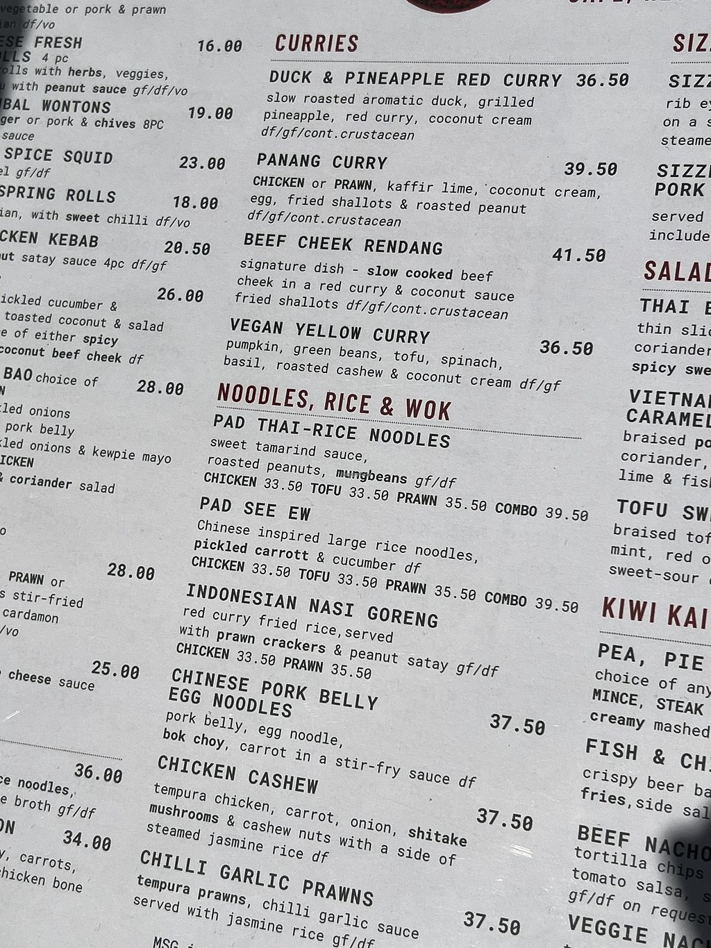 Vegan burger (bottom), side Asian salad (left), and modified pad Thai …