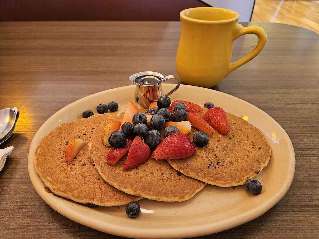 I got the vegan banana bliss pancakes, they were pretty good but the serving size is smaller then expected. It was kind of expensive for the amount of pancakes.