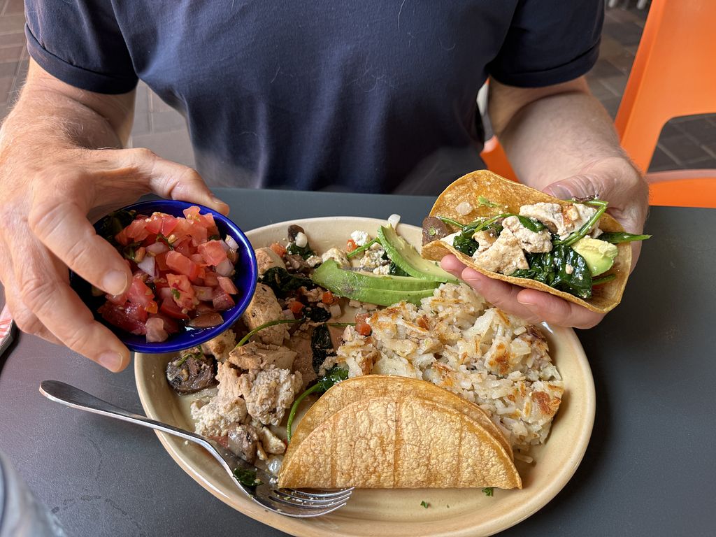 Enjoyed the vegan pancakes and tofu scramble breakfast tacos! It can be so hard to find good vegan breakfast options and this is a great choice!