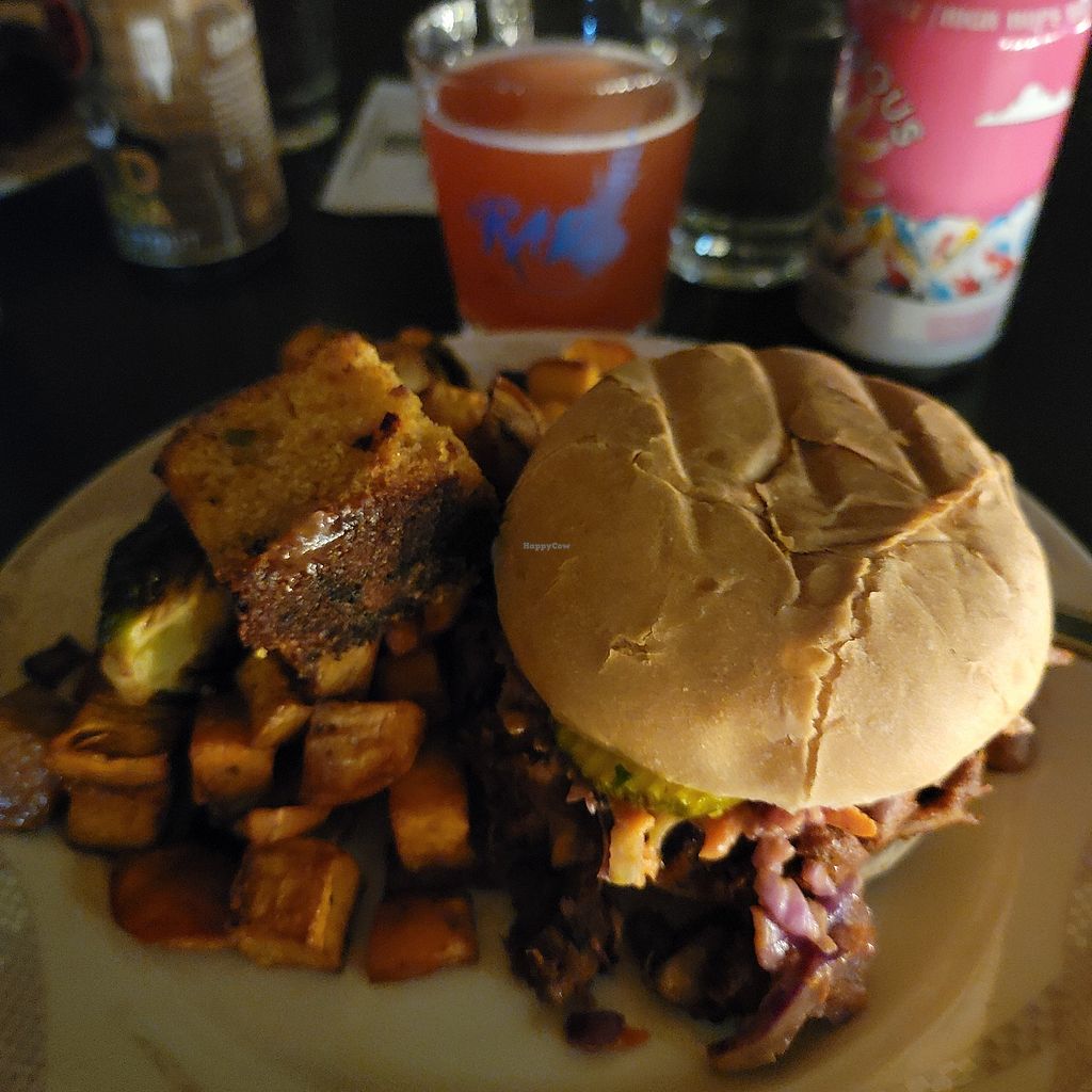BBQ Jackfruit with a side of Brussels Sprouts Sweet Potato Hash.