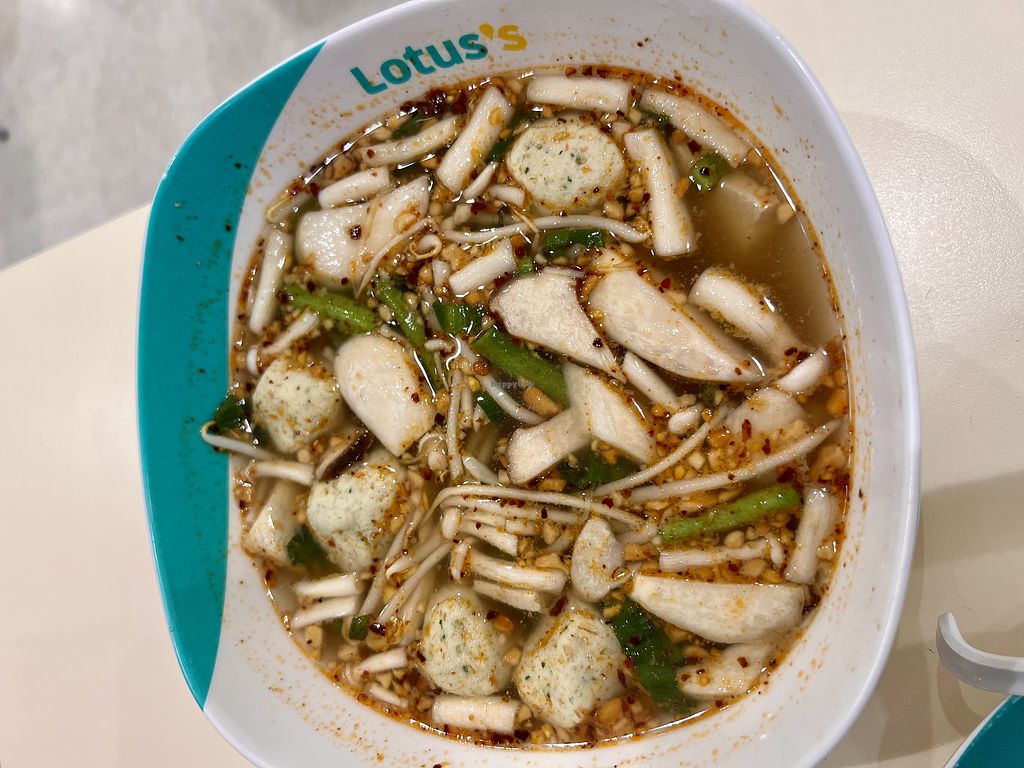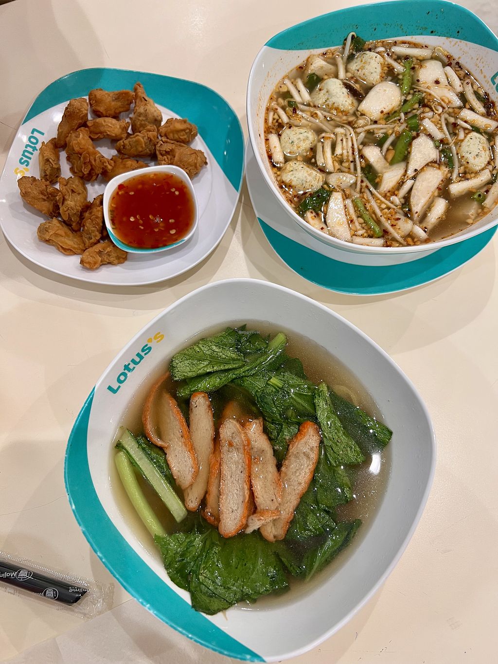 Loads of options and the food is great. Not the biggest serving size. Need a Lotus's cash card as other mentioned but no big deal just buy one at top of escalator and load desired amount on. Large menu listing dishes in front of counter but not alot of photos and no printed menu so sometimes what you get will be a surprise.