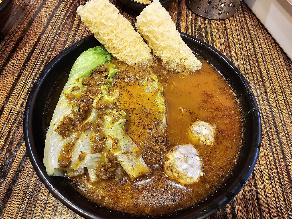 (Vegetarian) Laksa Instant Noodles with Vegetarian Beef Satay, Burdock…