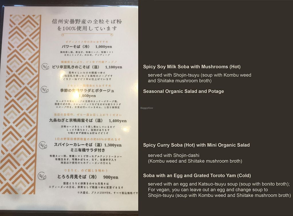 They have salad soba. For vegan, ask to change tsuyu (soup) to Shojin-…