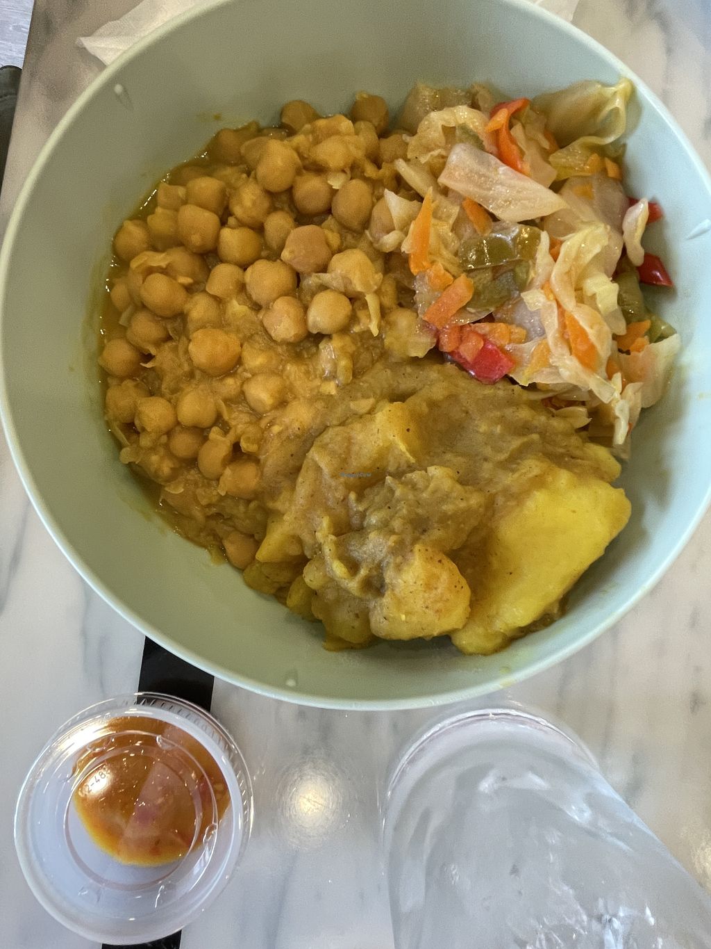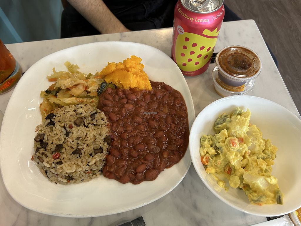 Red beans, coconut rice, sautéed veggies, mashed pumpkin, and potato s…