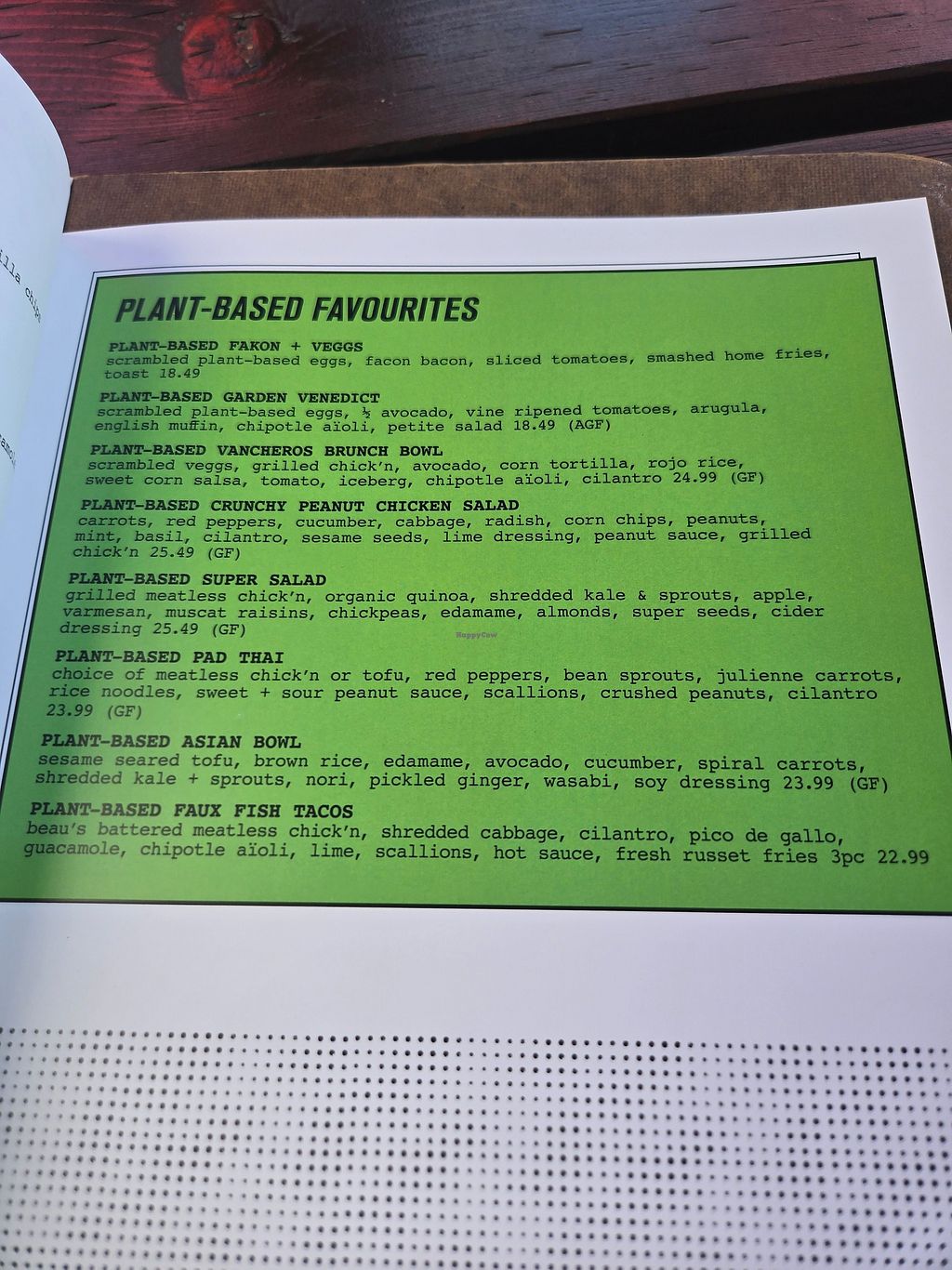 This is my go to in Brantford for plant based meals. Full plant based menu with variety of options. I've has the plant based nachos, "chicken wings" and pad thai and loved them. Had the plant based "chicken burger" which I didn't like as much.