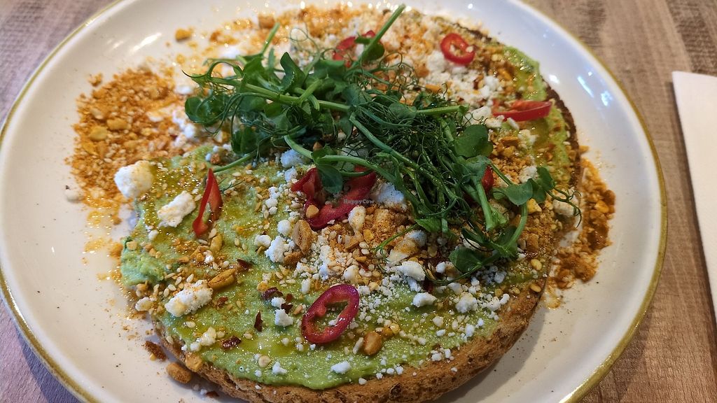 Society only has a few vegan options, but it's tasty food in a fun atmosphere. I think the Avo Chili toast is quite nice with a generous topping of smashed avocado and especially nice with the addition of the chili nut oil, which gives it a richer flavor. Service is friendly and prompt.