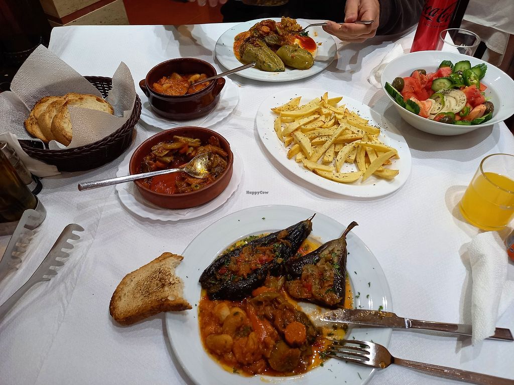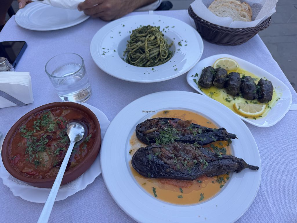 The menu has quite a few options that can be made vegan when asking, however they were out of a lot of stock of ingredients today so I couldn’t have the stuffed peppers or stuffed eggplants I was hoping for. What we did have was tasty though. Always grateful when there’s a couple of options in a foreign country when I don’t speak the language.