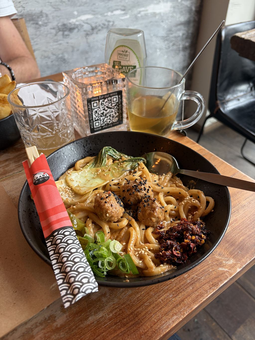 Really liked te relaxed informal athmosphere, good service and the food was absolutely delicious! We ordered for a starter the ribs t share, the cheesy burger with rustic fries, Ben Ben noodles (highly recommend!) and to top it off we had te cheesy cake and snickers. Sooo good! We were stuffed all evening, so come with an empty stomach😉