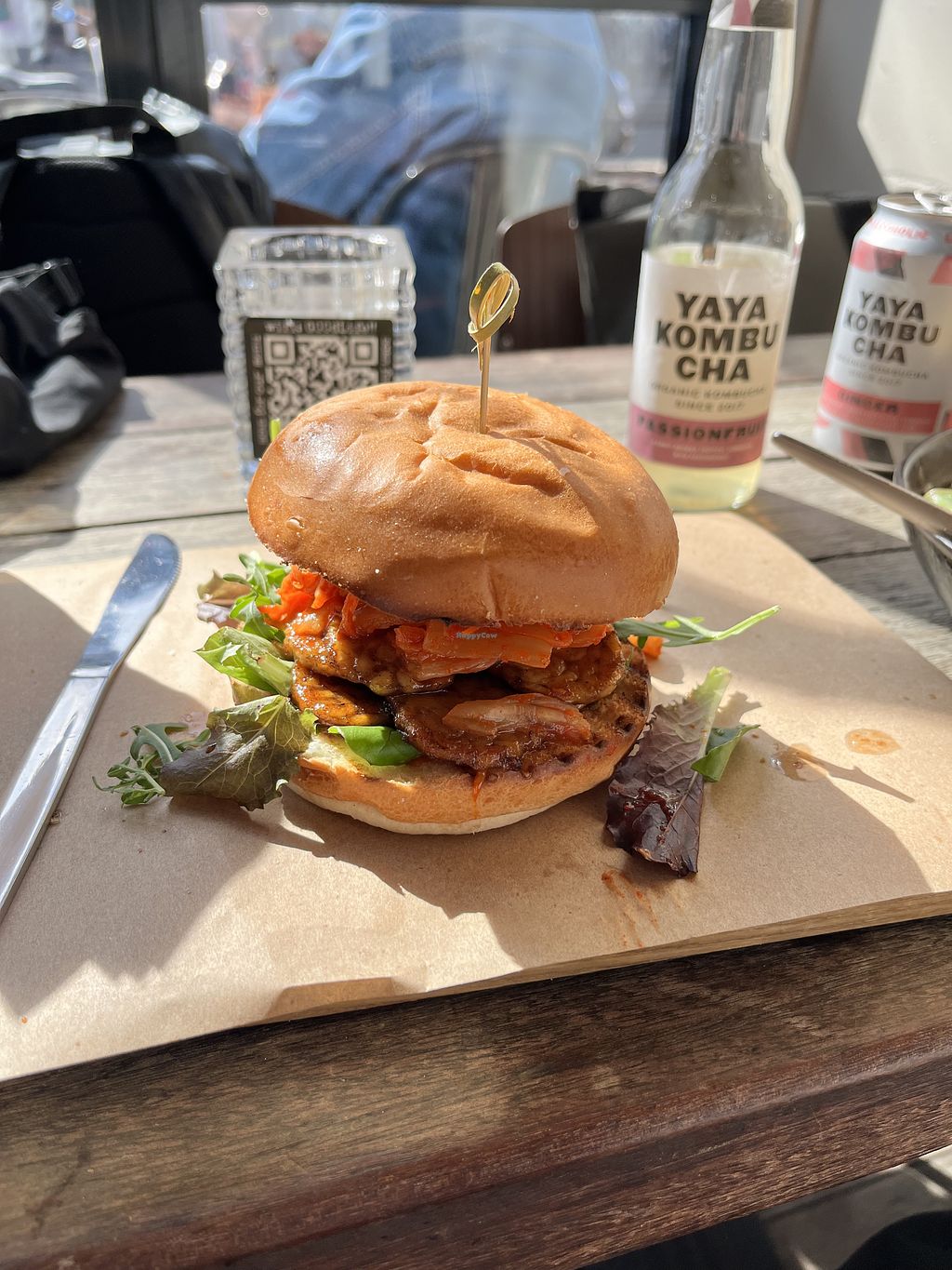 We had the udon satay noodles, and the kimchi-tempeh burger. It was all very tasty 💚