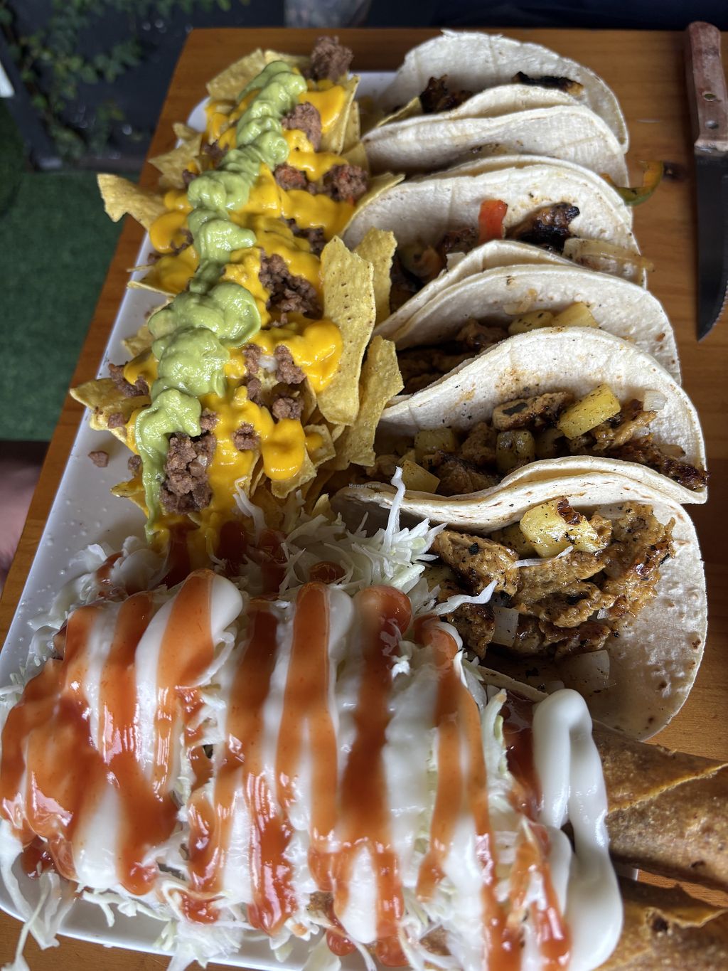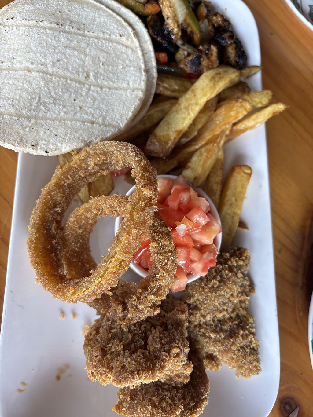 Tacos de Hongos Ostra y Kangreburger de seitan con papitas.