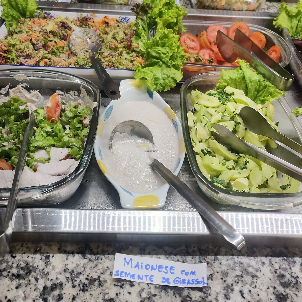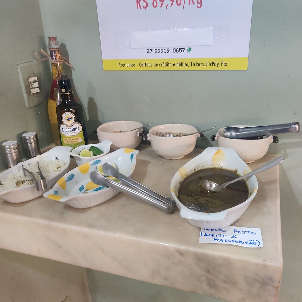 This is a great option for lunch in Vitória. It is more expensive on weekends but still fair, considering that it is 100% vegan and organic. There were many options of salads and some options of warm dishes in the buffet. I wanted to try a bit of mosr things warm so I ended up getting a lot of food. There was nothing that I didn't like. Everything was very well-seasoned and rich in flavor. But I have to agree with the other review that says there aren't many options of protein, at least that was the case when I went there. Desserts are available in a separate part of the buffet and are also charged per weight. There were four different options and two of them were kind of variations of the same thing, so I tried only two of them. They were both delicious! Really good and sweet enough even without refined sugar. Don't leave without trying something from the dessert buffet! Totally worth it.