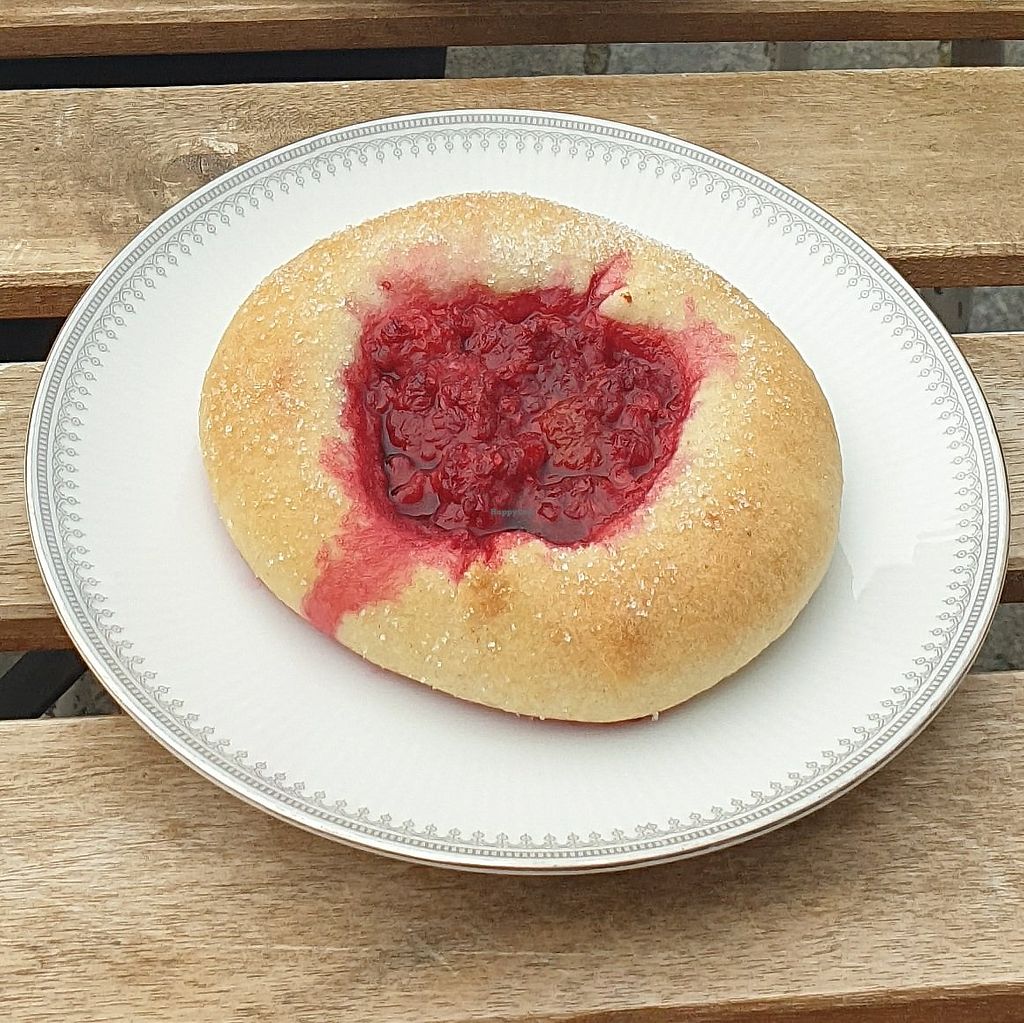 The vegan raspberry pastry was very delicious (49 kr)! The café is cute and has a welcoming atmosphere. However, no warm dishes are served at the moment, so the description here on HappyCow is kind of misleading. Additionally, there was only one vegan option. More options for vegetarians are available, e.g. sandwiches.