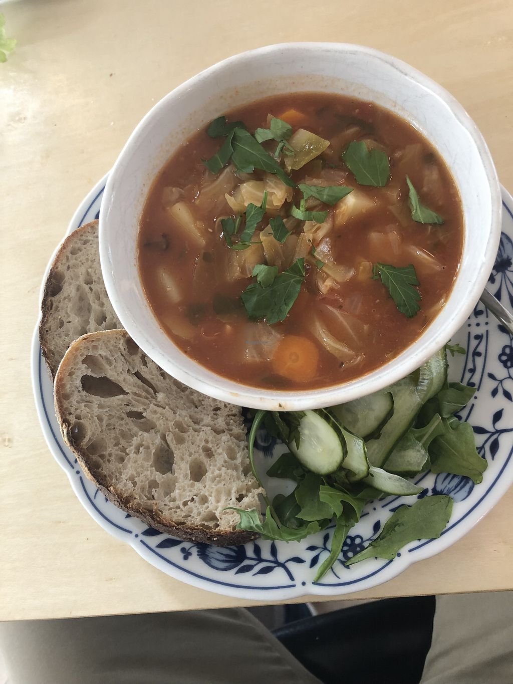 Their daily soup can be made vegan and are so jummy 😍 lots of bites!