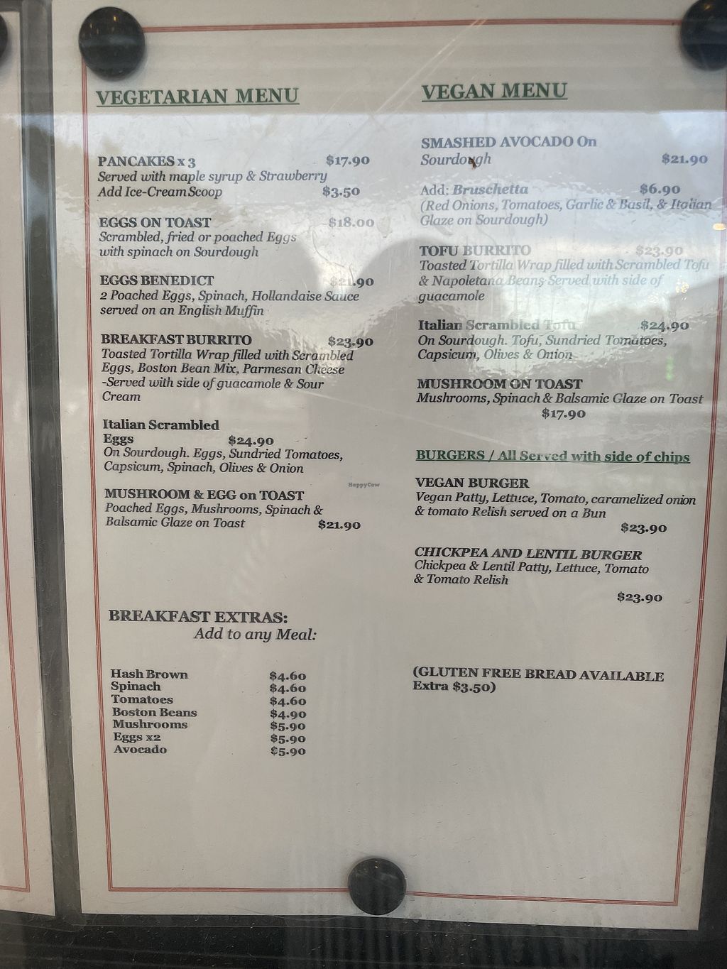 Vegan menu as of June 2024