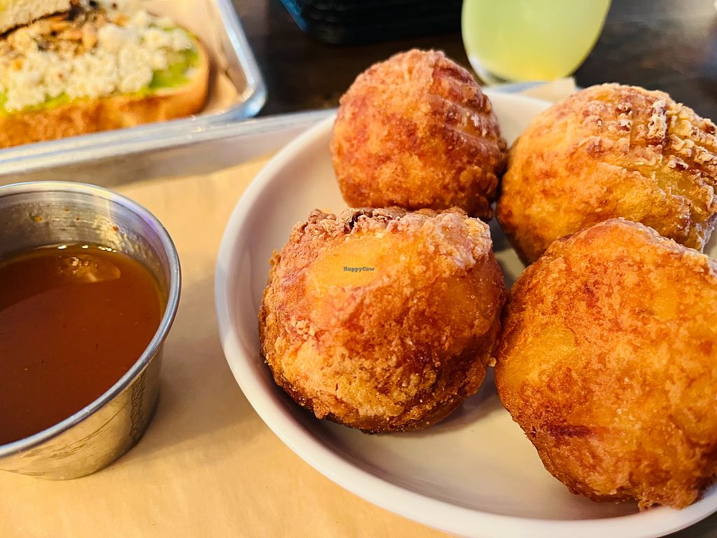 Read moreI can't recommend the curry spud puppies enough. I also had the impossible burger, which can be easily swapped from vegetarian to vegan by removing the cheese and changing to sourdough bread. These swaps are clearly noted on the menu. The house made pickles and mac sauce (always made with vegan mayo...I checked) are a nice touch and this will definitely be my go-to place if I'm craving a burger. Already looking forward to going back and trying more vegan options.