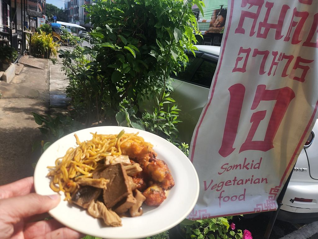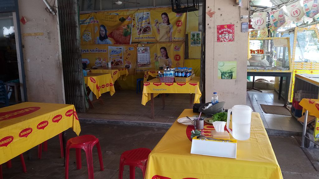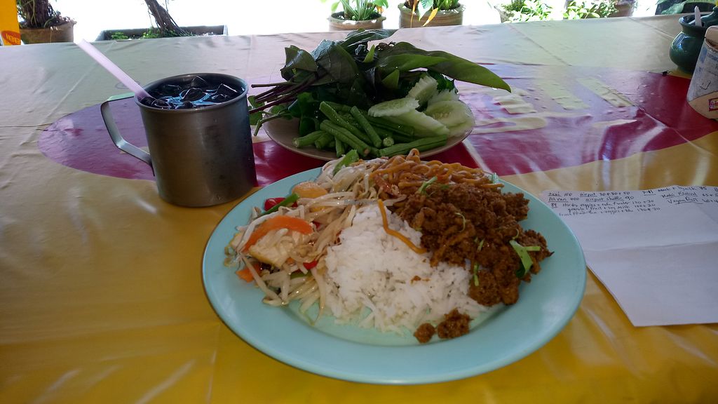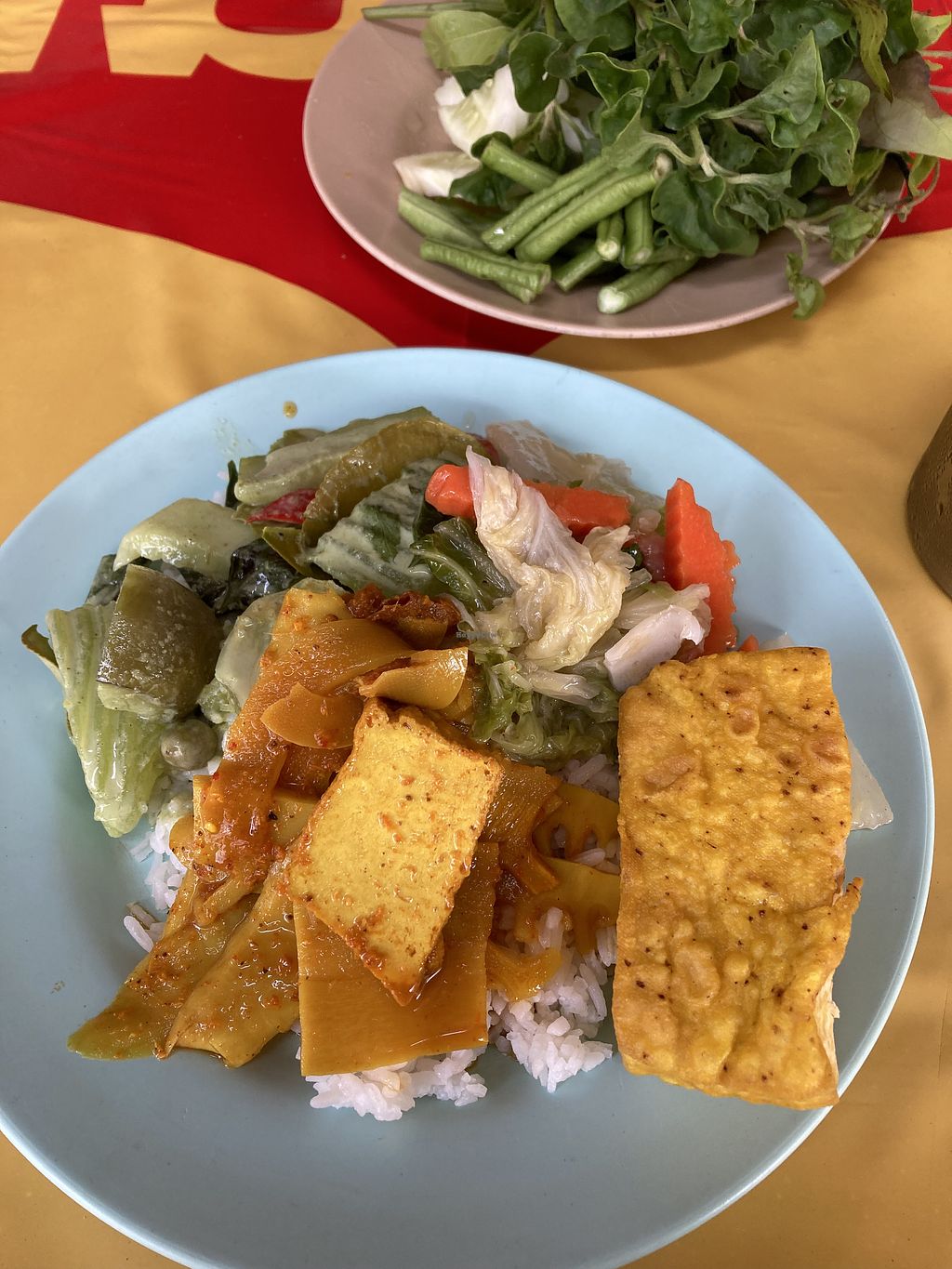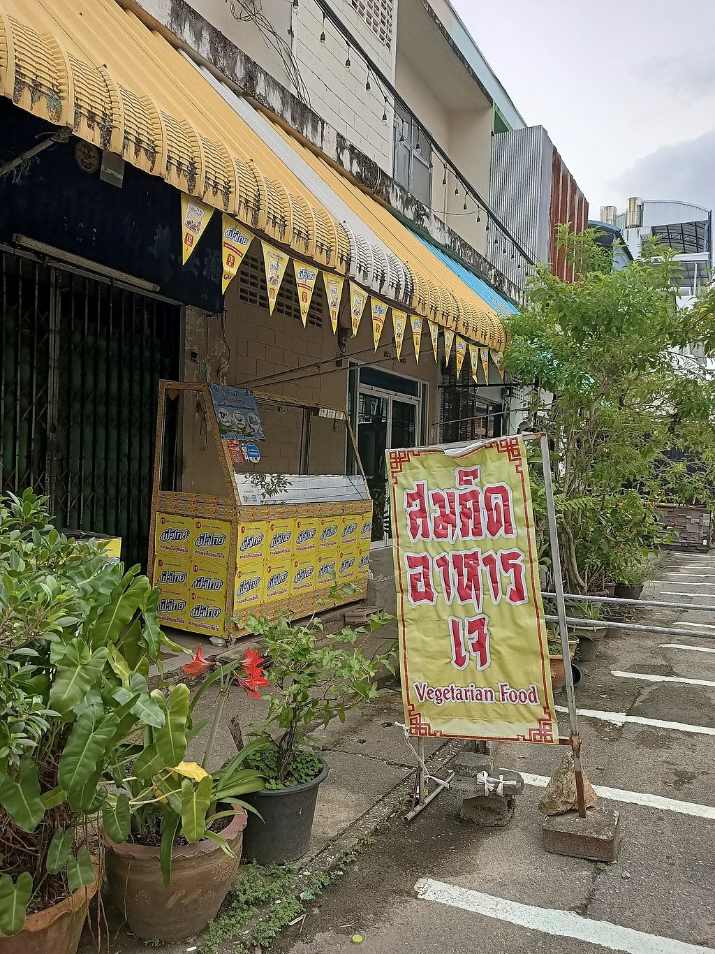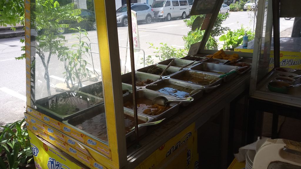 July 22 & 23: I ate 2 lunches here. This local vegan eatery offers a variety of prepared dishes in a buffet format. Twice I chose 3 options with rice = 60 baht each meal. The lovely owner gives you a side dish with cucumbers, green beans, and some greens, plus free water. Such a deal and the food is tasty. Please eat here and support this owner's choice to spread veganism.