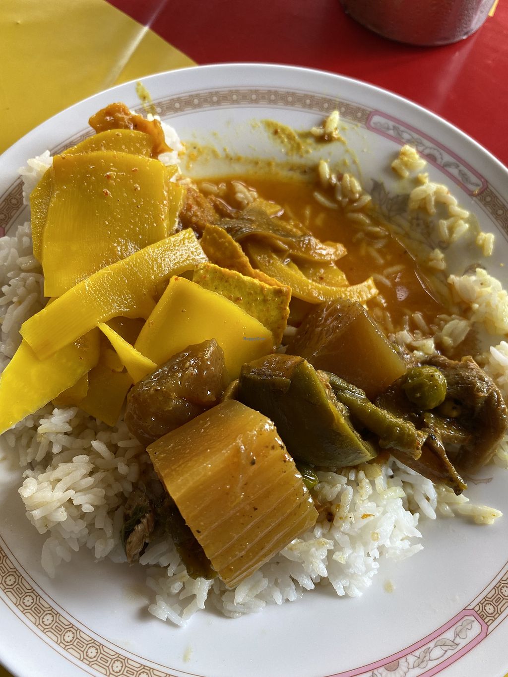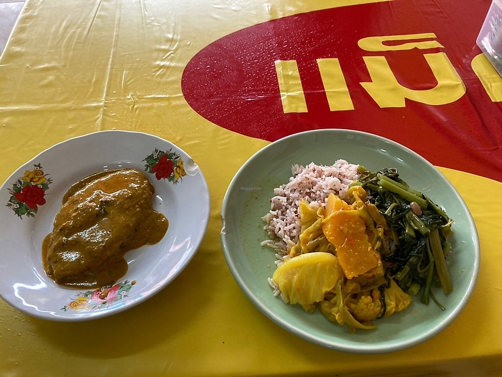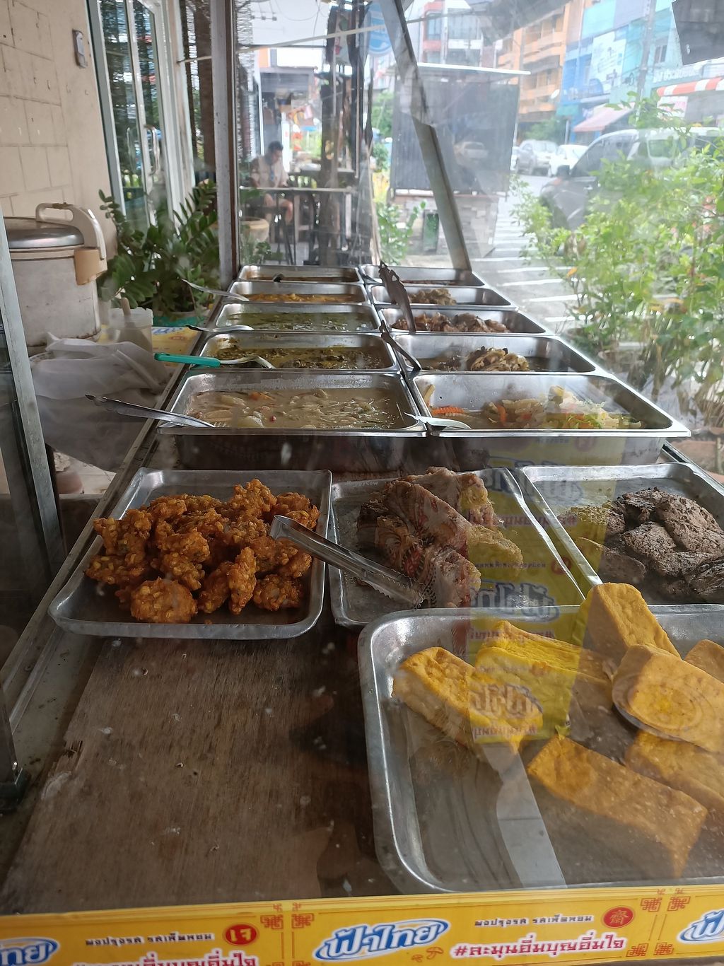 We enjoyed the food , it tasted quite fresh and varied. We got a plate of rice with 3 curry/veg dishes and a big piece of tofu (20 baht extra ). Lady working there was friendly and also give us cold water to drink.