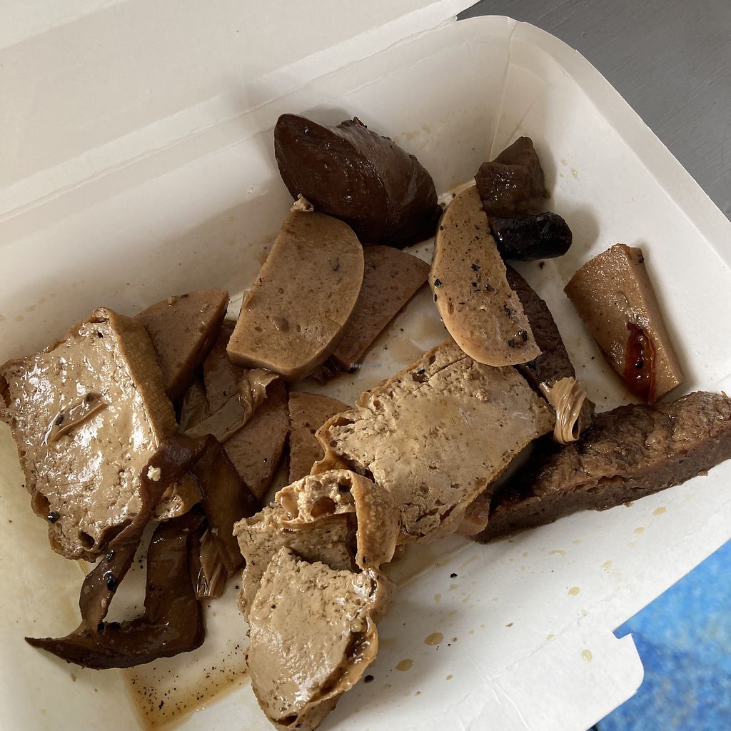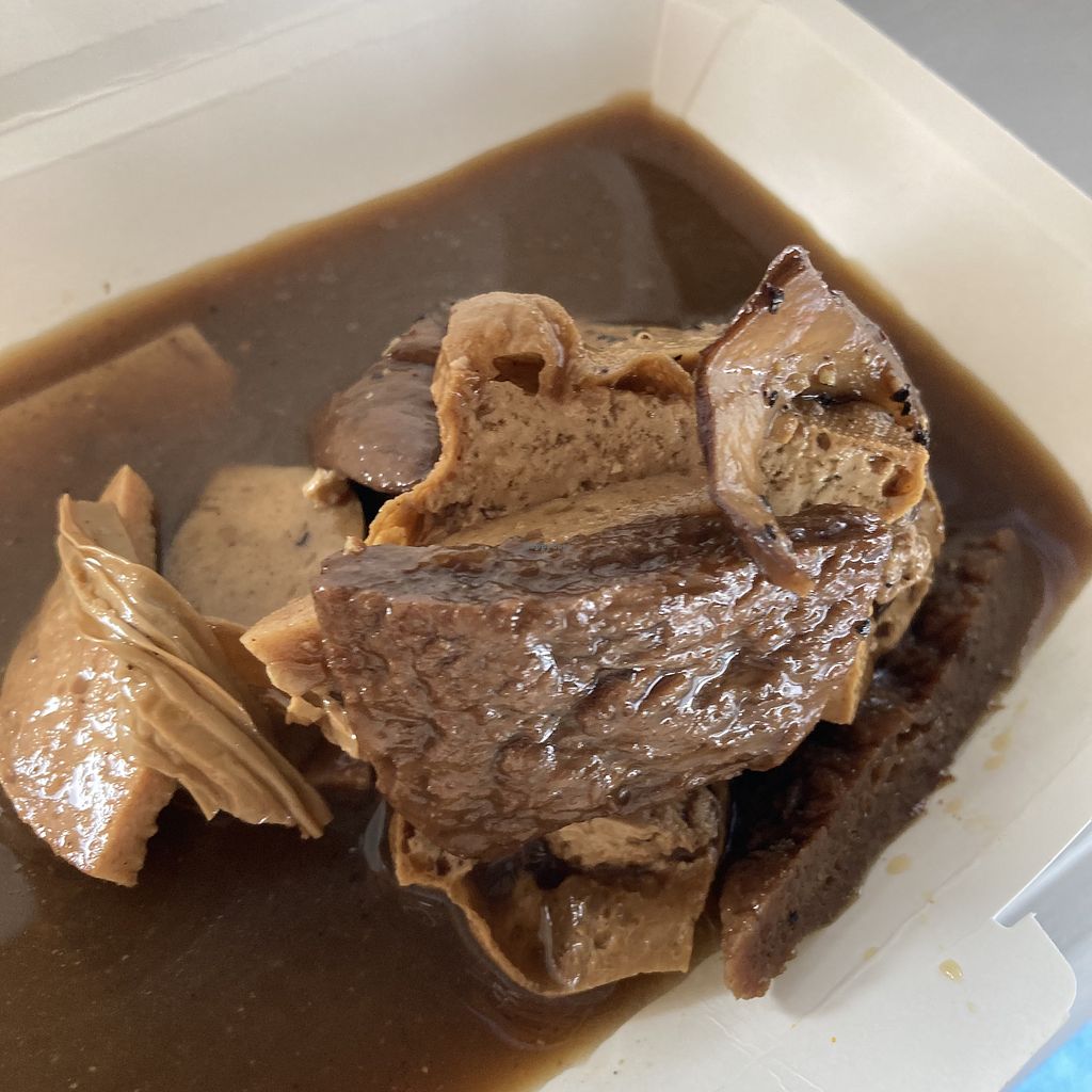 Small selection of dishes. Many curries that are very spicy, with mock meats and veggies. Offers more mock meats in herbal broth, stir fried veggies, mock meat pieces and more. Changes daily! Takeaway possible as well. Cheap!