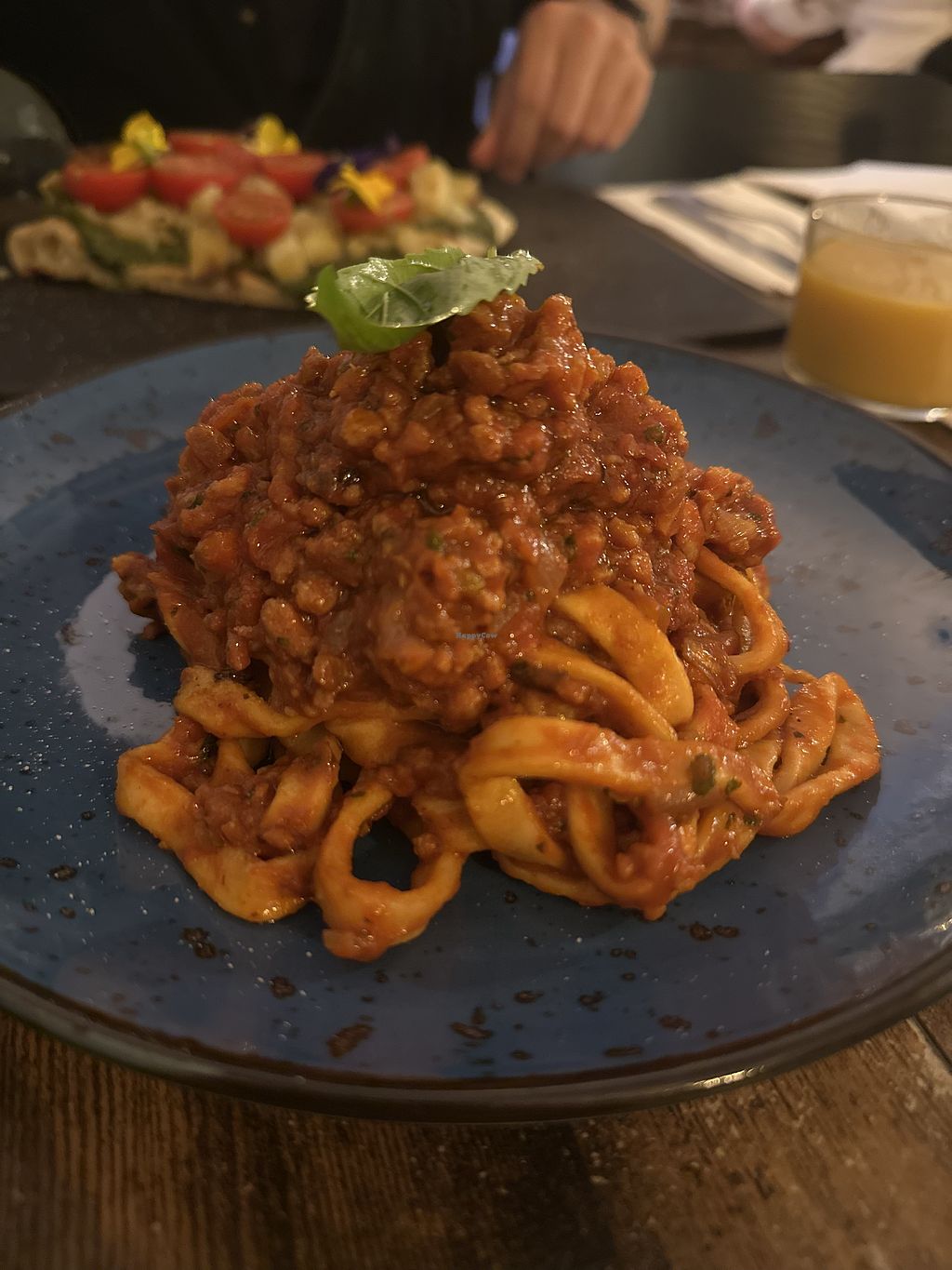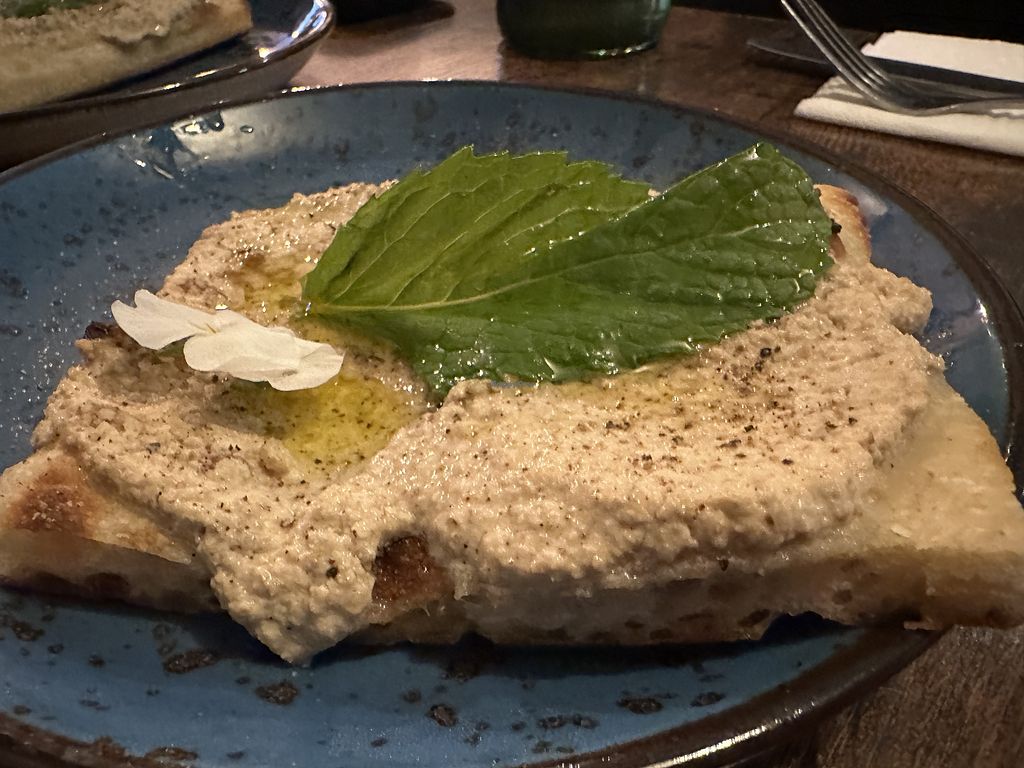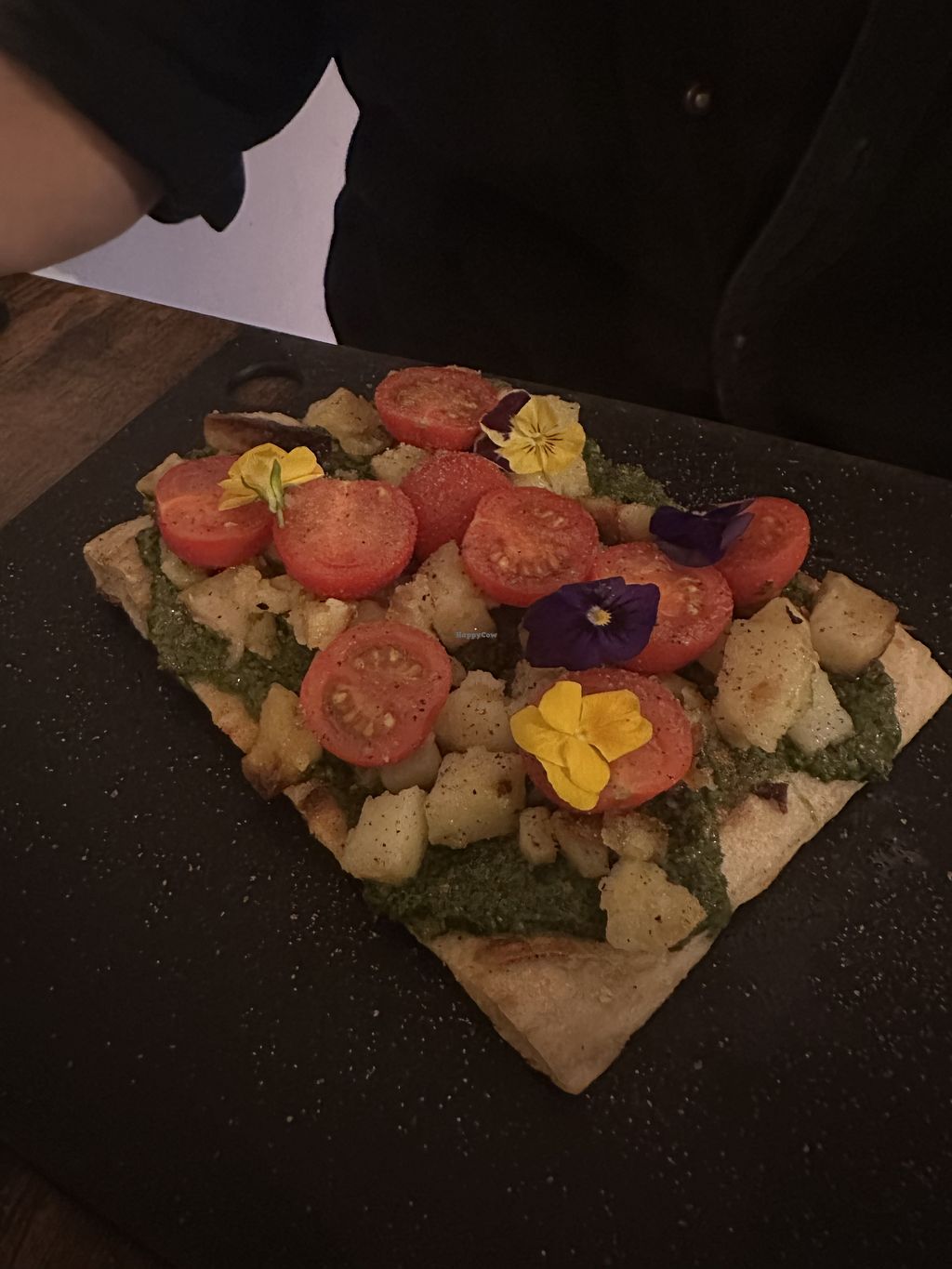 Ravioli with pesto, BBQ tempeh, and George Constanza salad