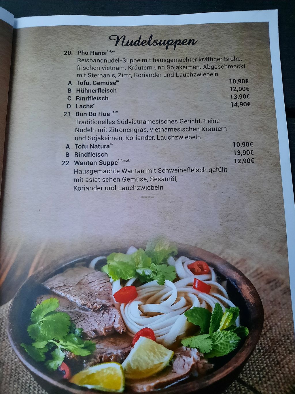 Serves meat, vegan options available. Vietnamese restaurant, which also serves sushi. Has a separate menu section for vegan dishes. Choices include pho, fried tofu with mock shrimp and vegetables, and glass noodles with vegetables. Some of the maki and sushi rolls could also be vegan - ask staff for details. Open Tue-Fri 11:00-14:30, 17:00-22:00, Sat-Sun 11:00-22:00. Closed Mon.