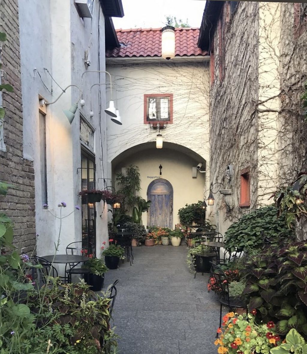 Such a cute piazzo full of plants and is lit up at night, a super cute date spot!