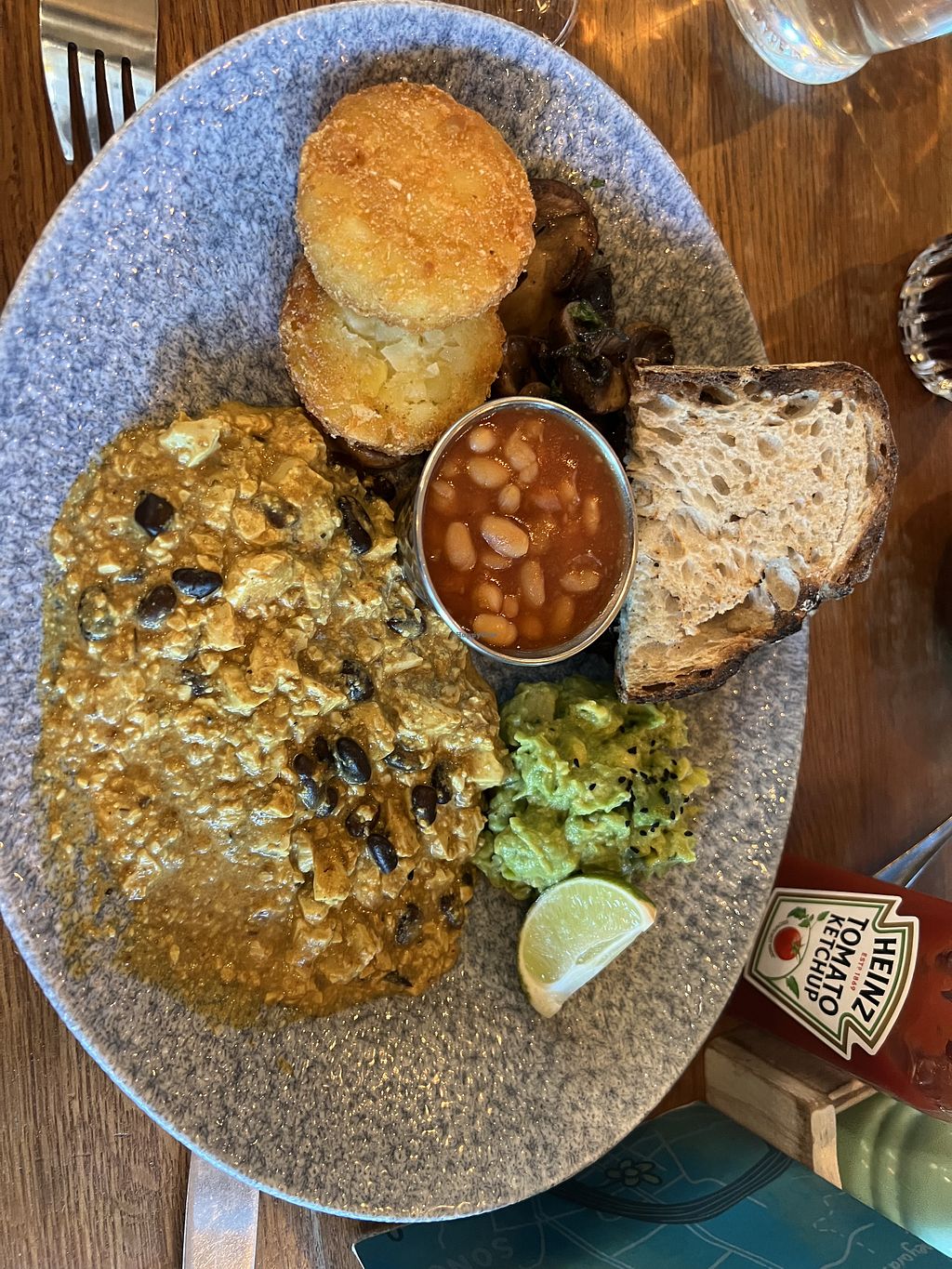 All day vegan english brunch. Delicious :). Some white wine marked veg…