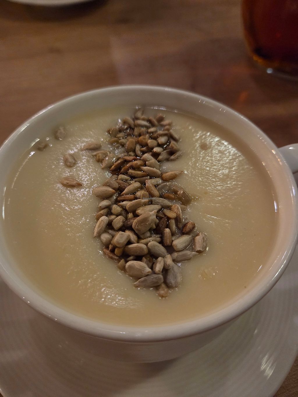 Vegan items clearly labelled on menu. A choice of pierogi and sides. I had traditional mushroom and cabbage huge portion! I only realised later that there was a lunch menu which included soup and a side (there was a vegan soup). Pierogi were delicious. Decent pricing. I was full for the rest of the day!